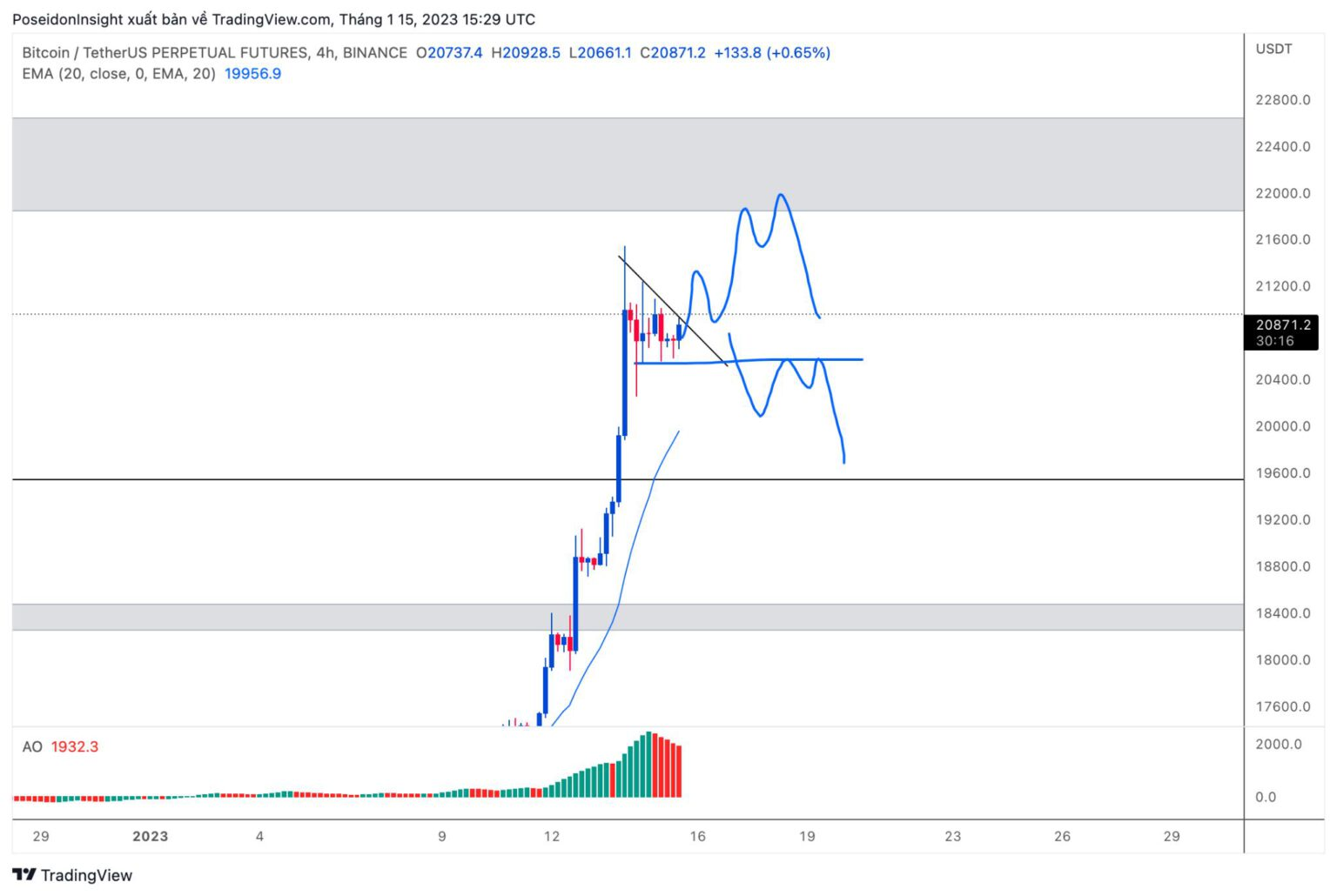 4h Chart of BTC/USDT on Binance Futures, screenshot from TradingView, January 22, 2023