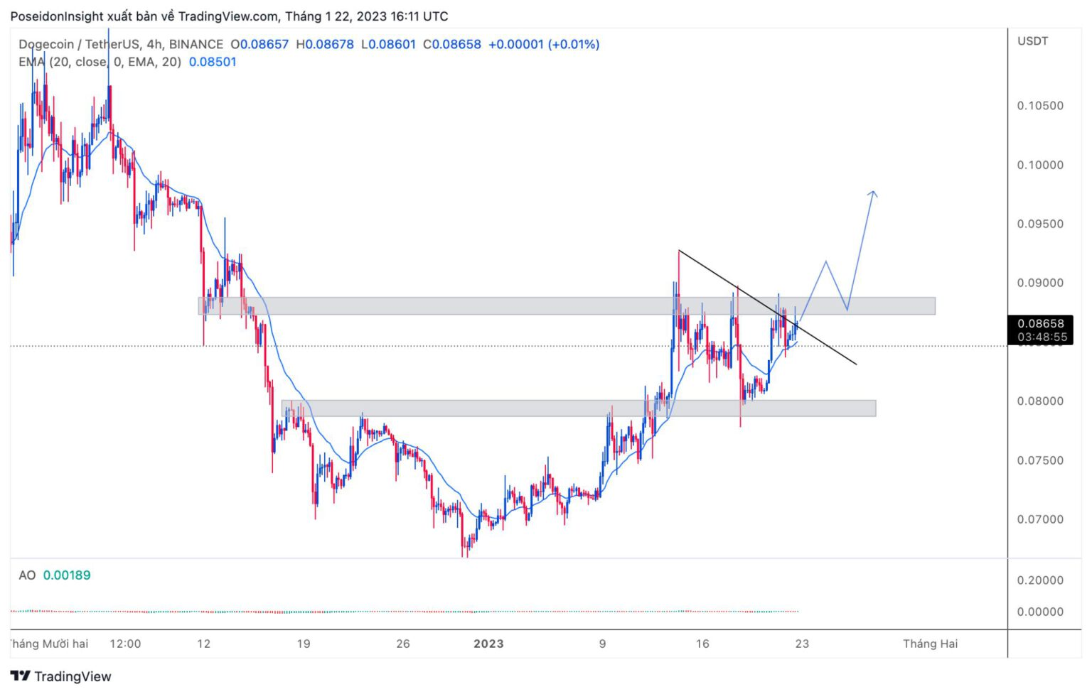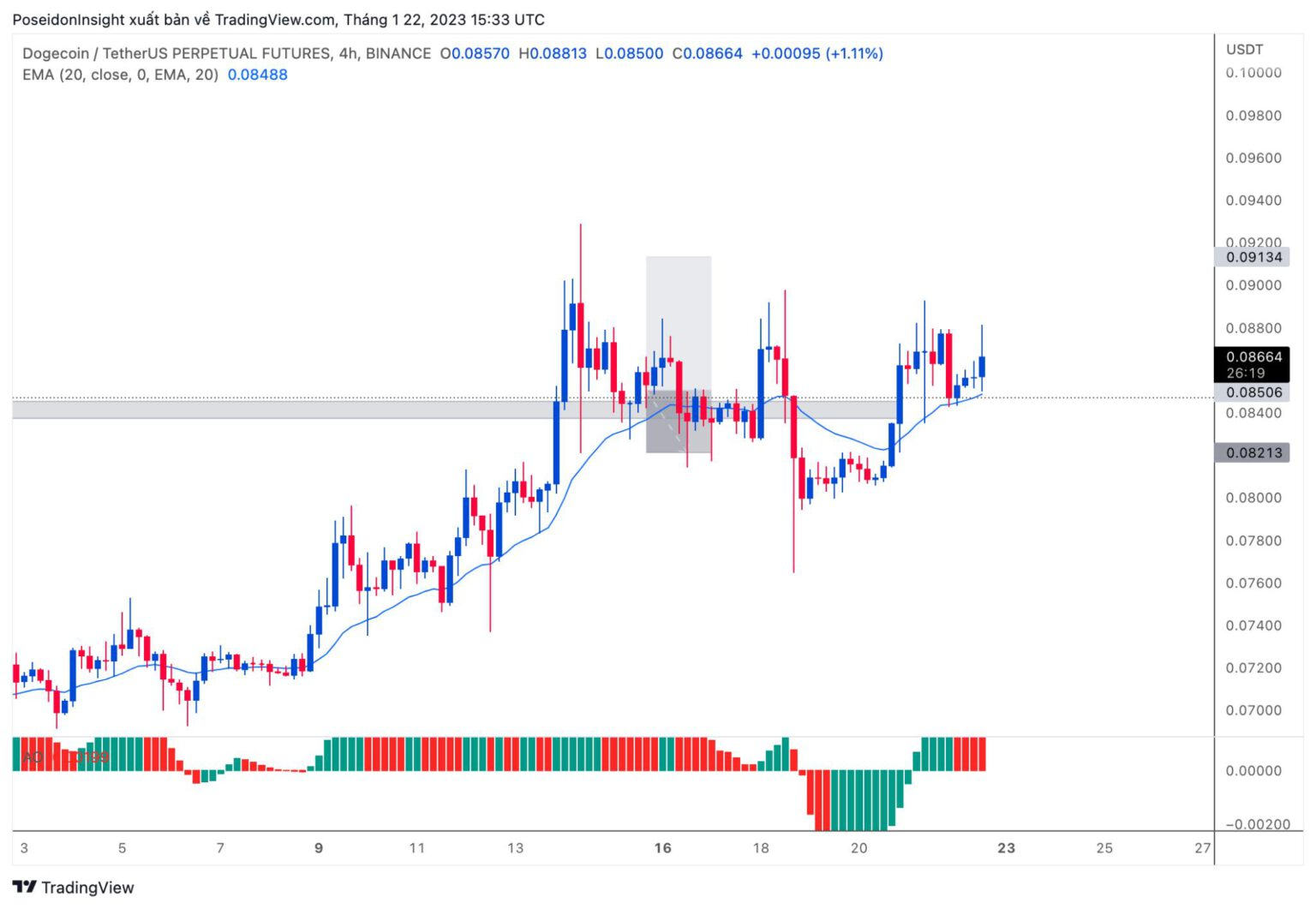 4h Chart of DOGE/USDT on Binance Futures, screenshot from TradingView, January 22, 2023