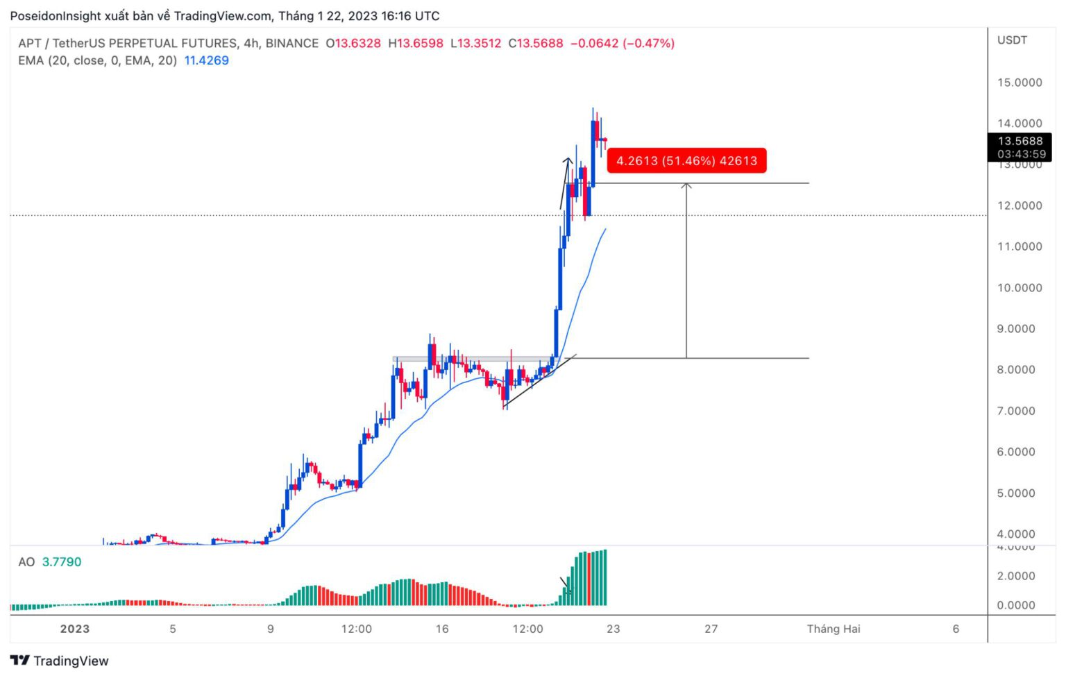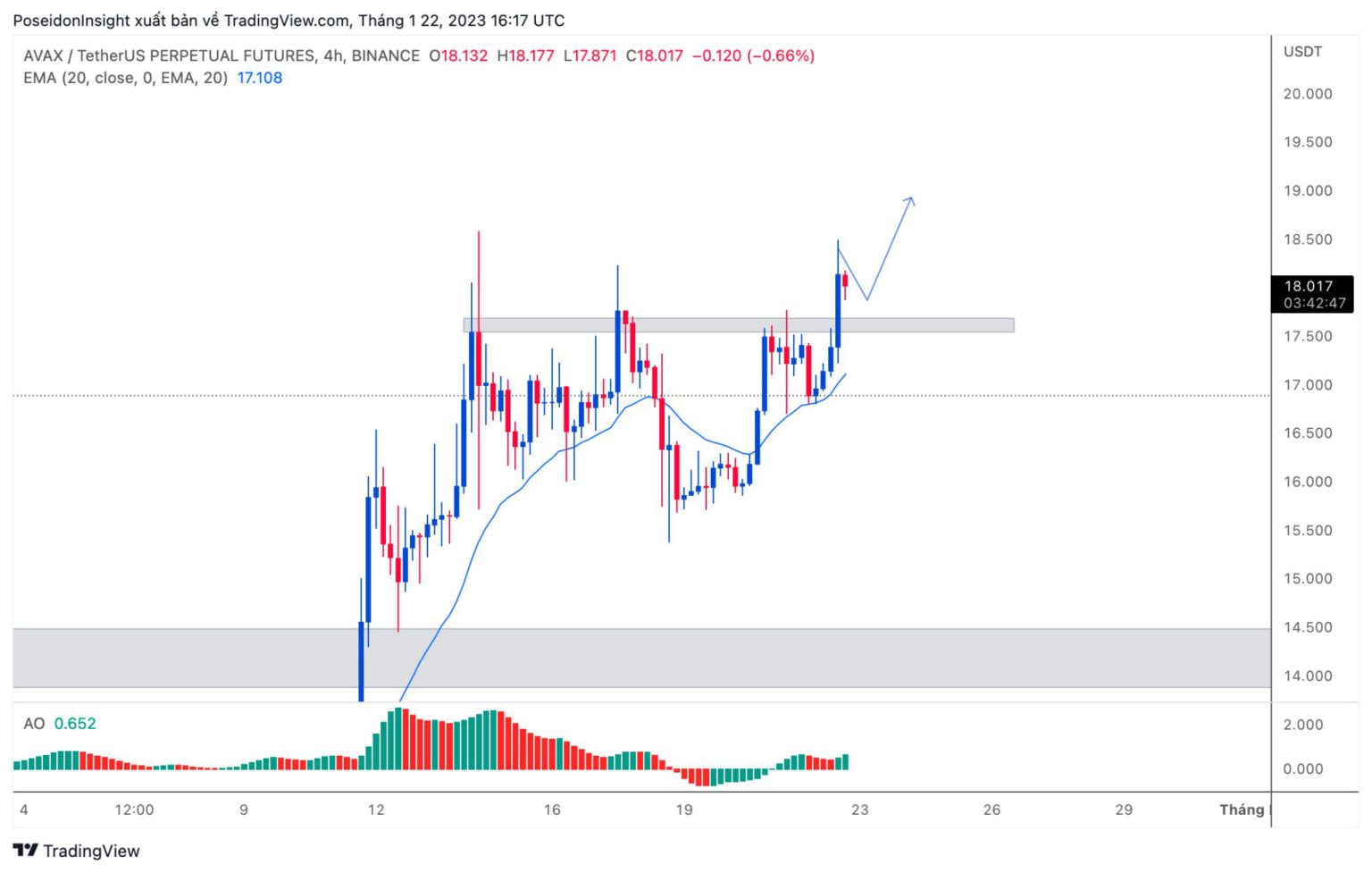 4h Chart of AVAX/USDT on Binance Futures, screenshot from TradingView, January 22, 2023