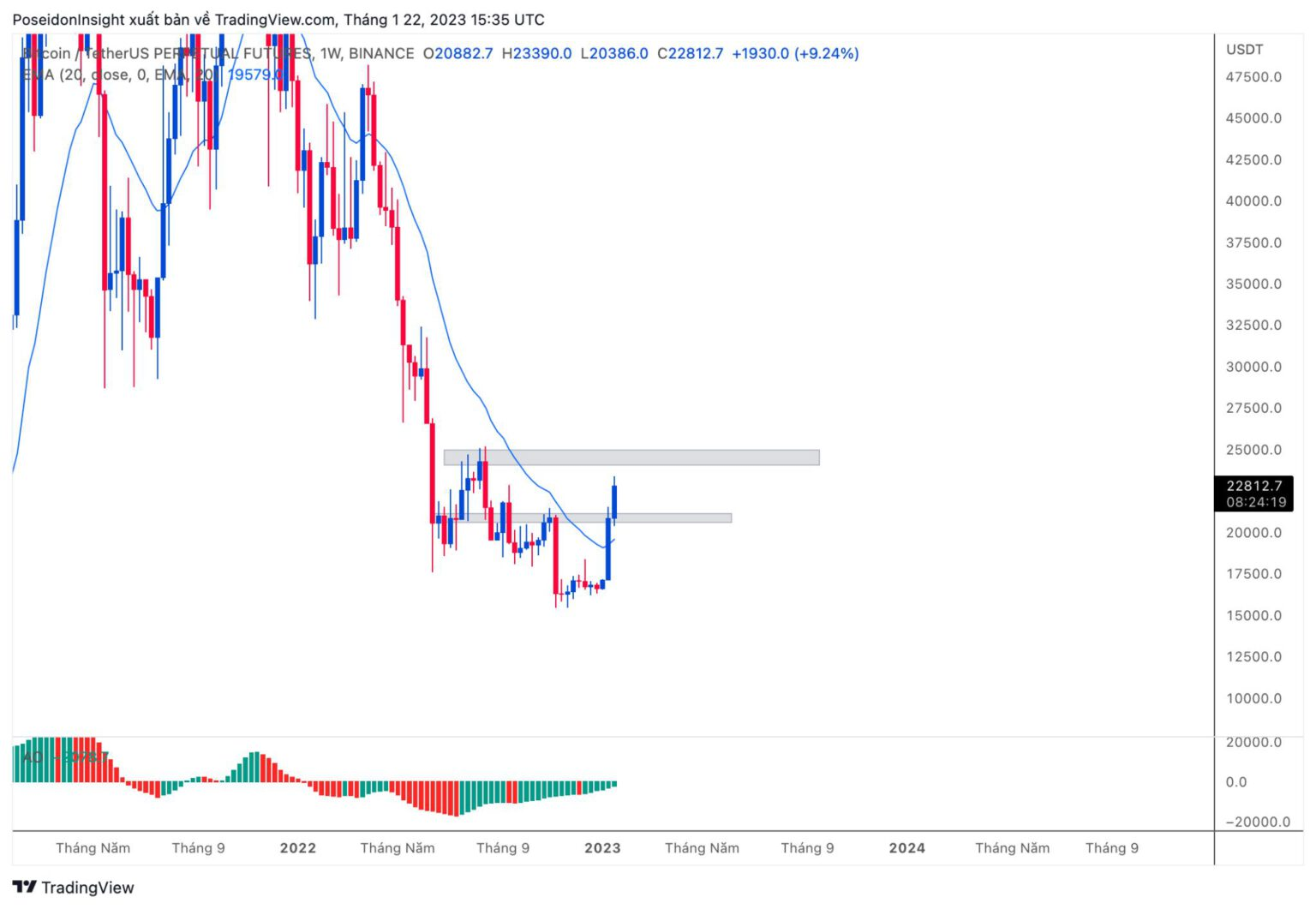 Next week, BTC is likely to either remain sideways or experience a slight adjustment. The price may consolidate in the range of $22,400 – $23,400.