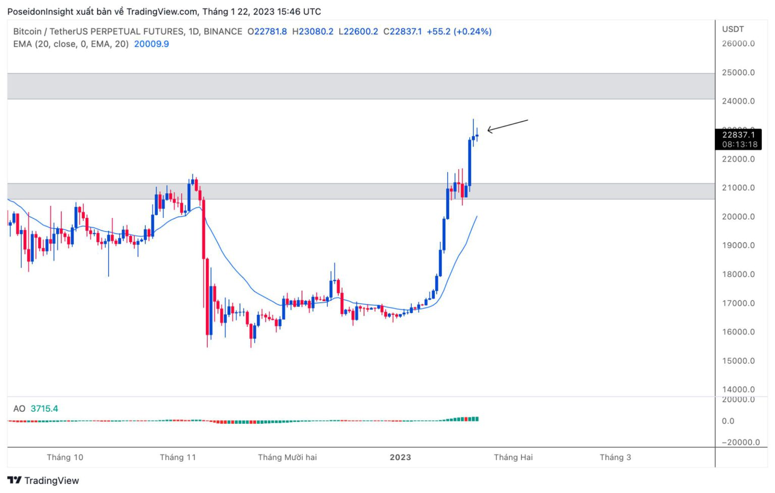 1D Chart of BTC/USDT on Binance Futures, screenshot from TradingView, January 22, 2023