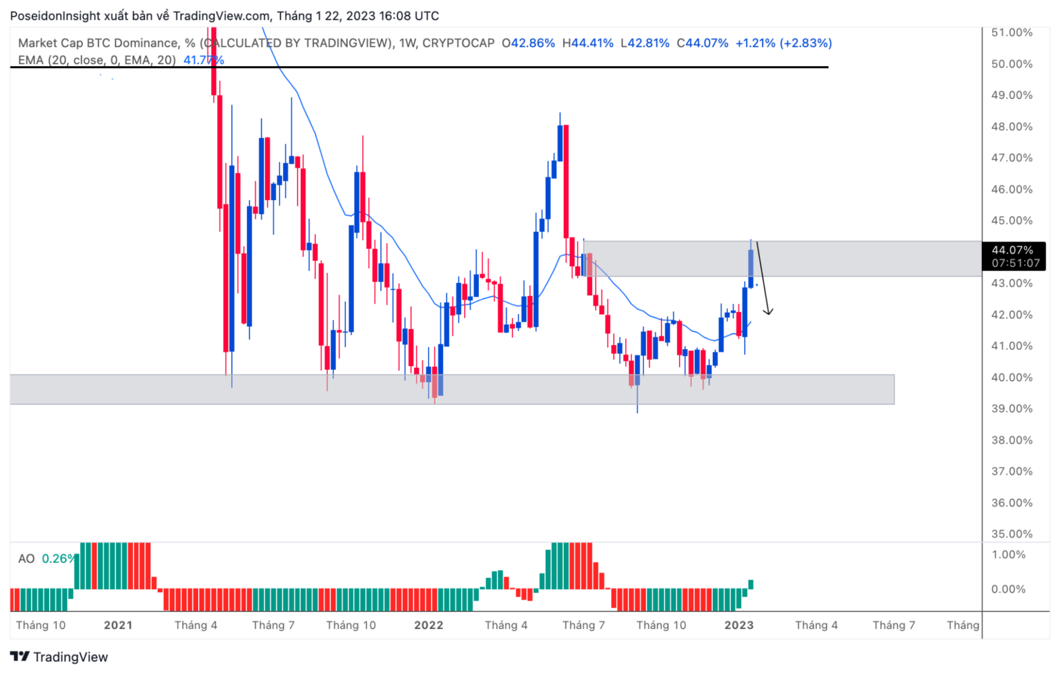 BTC Dominance Chart, screenshot from TradingView, January 22, 2023
