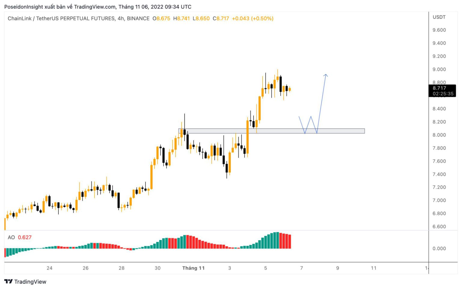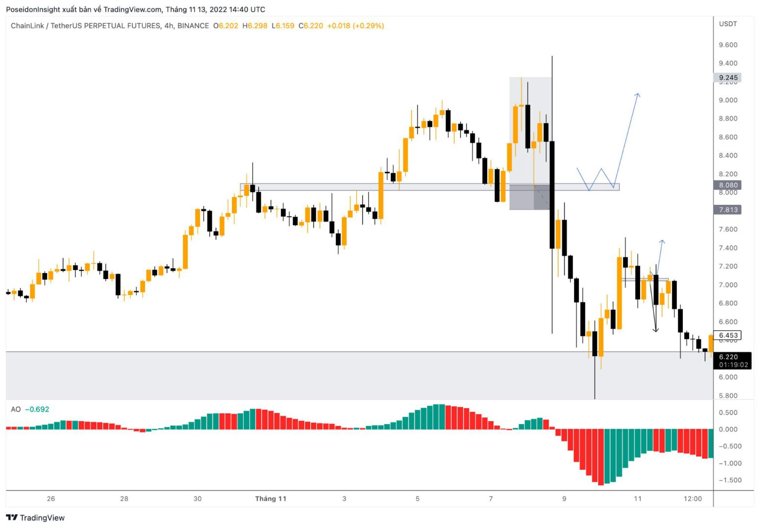 4H Chart of LINK/USDT on Binance Futures, screenshot from TradingView as of 11/13/2022