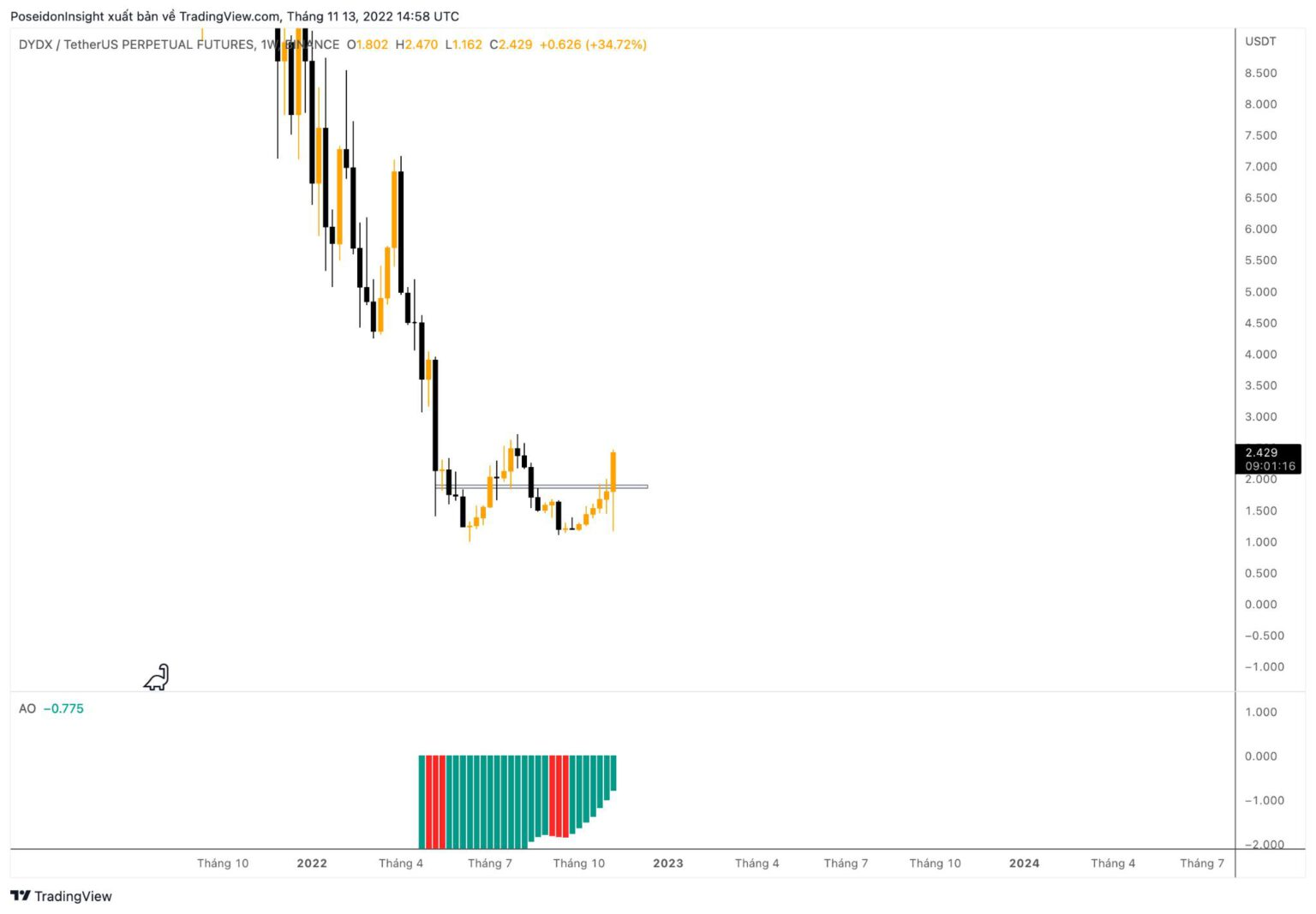 1W Chart of DYDX/USDT on Binance Futures, screenshot from TradingView as of 11/13/2022