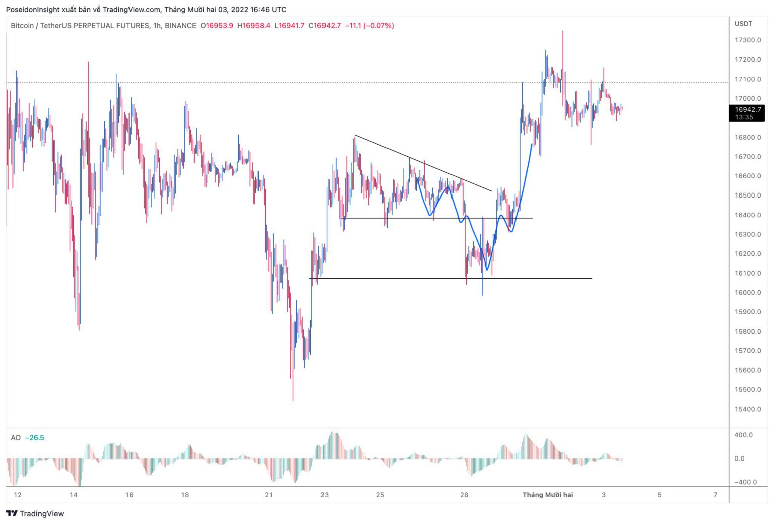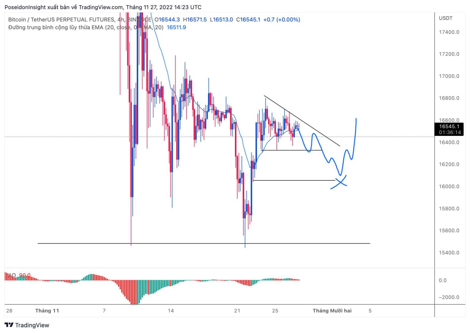 BTC closely followed the initial plan, executing a fake dump that cleared liquidity around 16,000 USD before bouncing up by 1,000 USD.