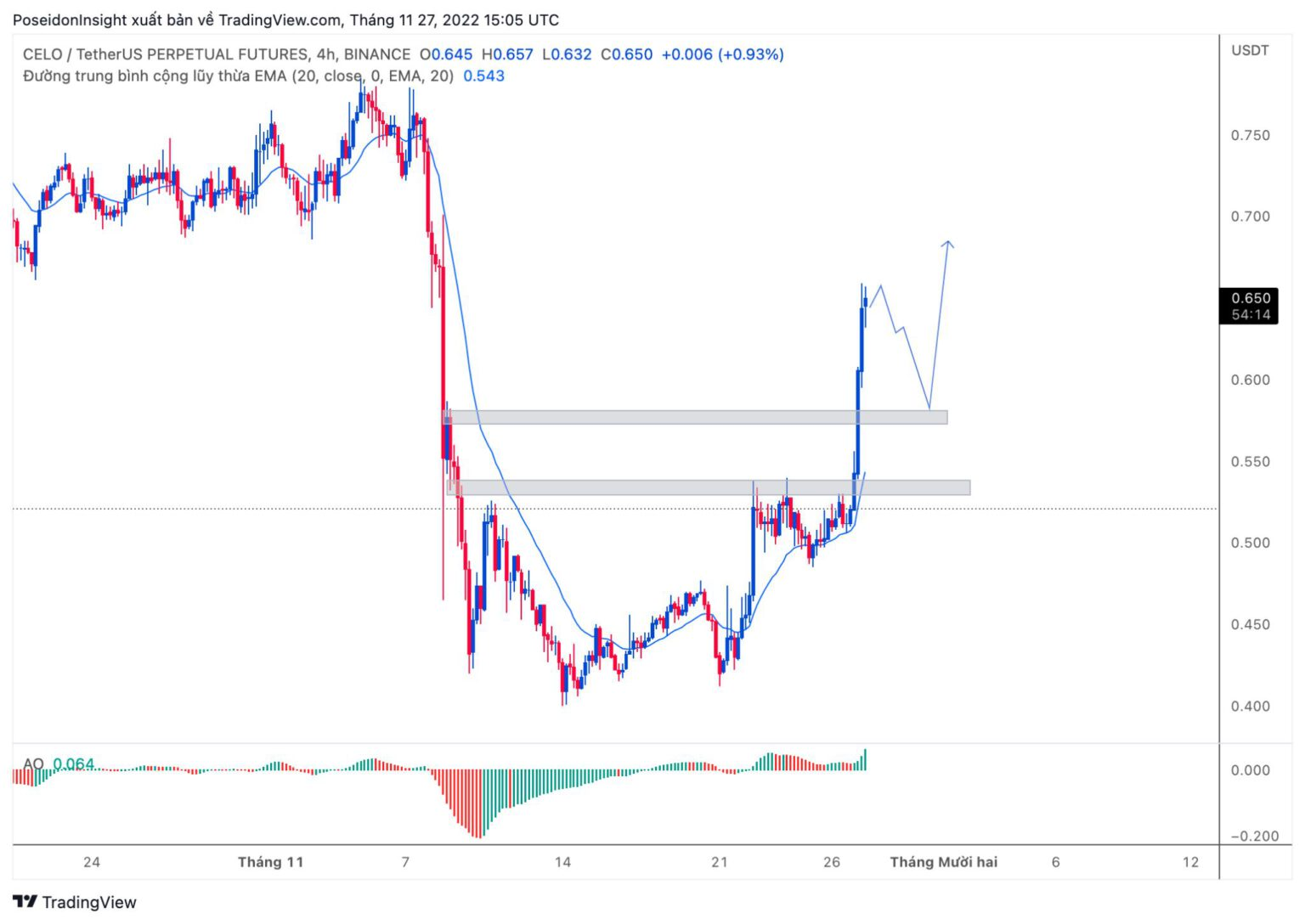 Similarly, CELO had a strong uptrend last week, so I planned to buy when the price retraced to support.