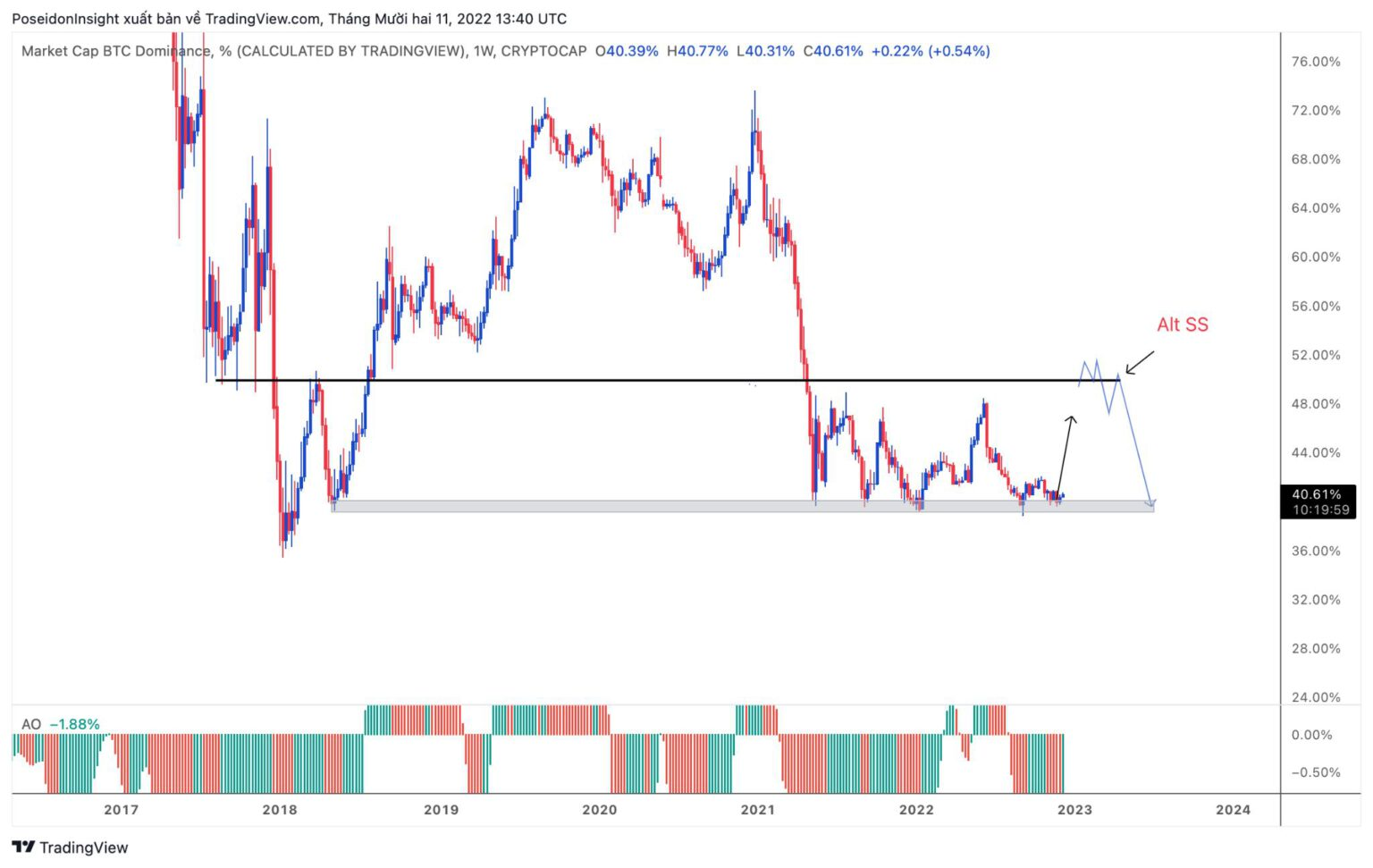 BTC Dominance chart on TradingView, screenshot from December 11, 2022