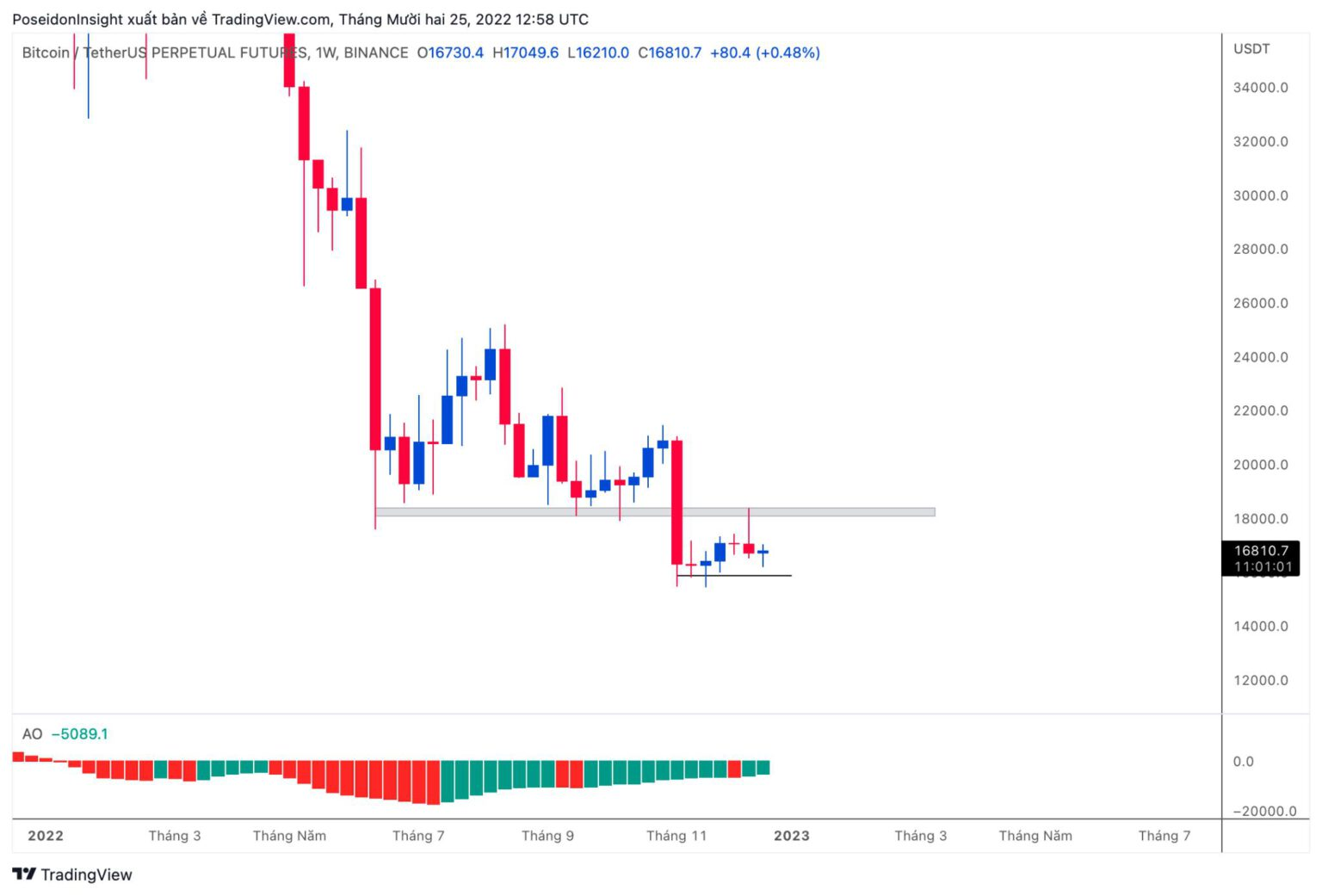 Weekly Chart for BTC/USDT on Binance Futures, Screenshot from TradingView on 12/25/2022