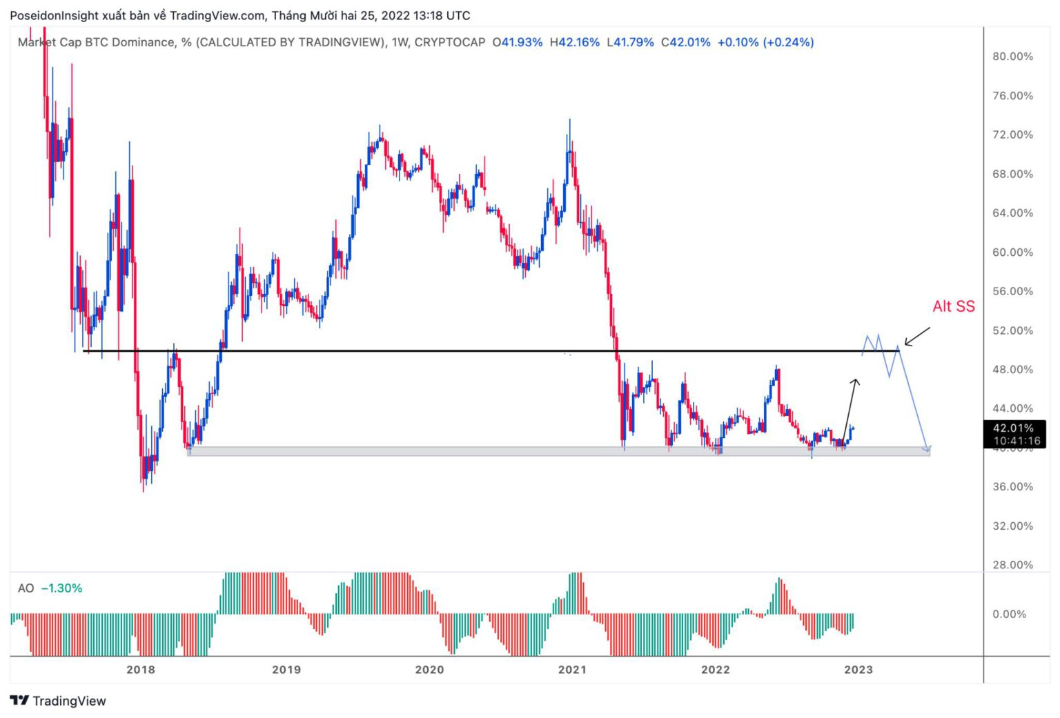 Bitcoin Dominance Chart vs. Total Crypto Market Cap, Screenshot from TradingView on 12/25/2022