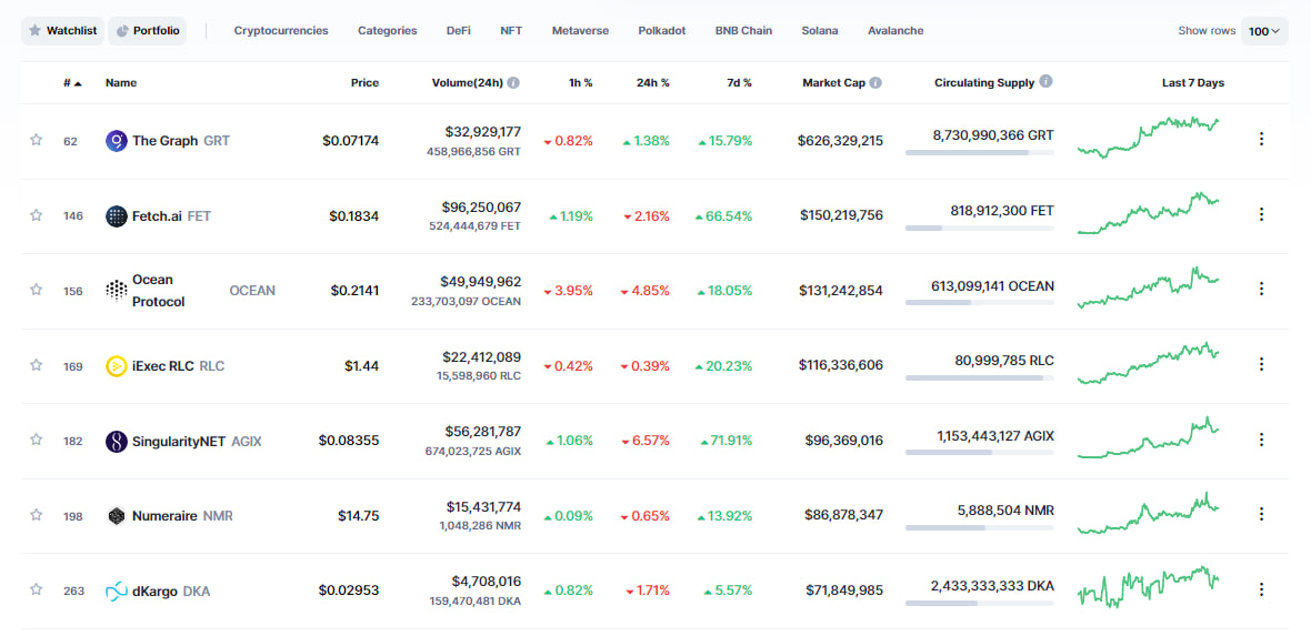Top AI Projects by Market Cap. Source: CoinMarketCap