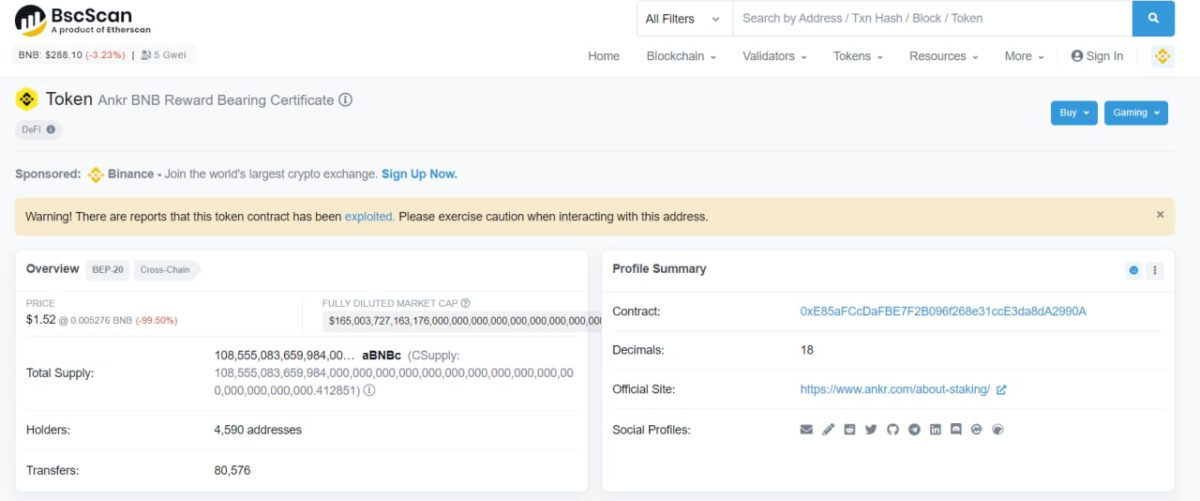 Ankr Under Attack: Unlimited Minting of aBNBc Token Pegged to BNB
