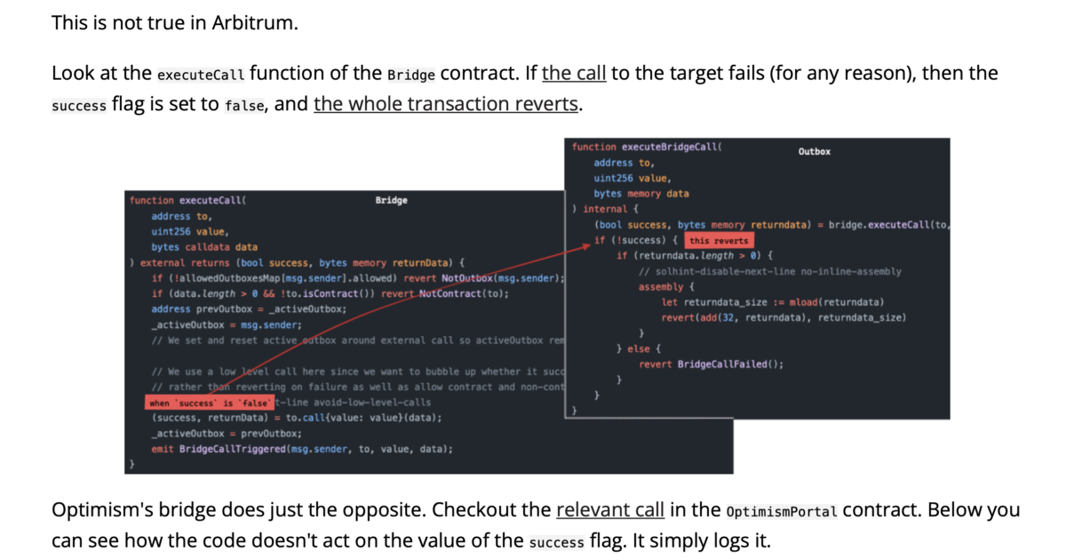 According to the blog, three vulnerabilities are identified at the final stage—data transmission and validation at the receiving end of the bridge. The author also compared these issues with how Optimism handles similar problems, showing a preference for the rival solution.