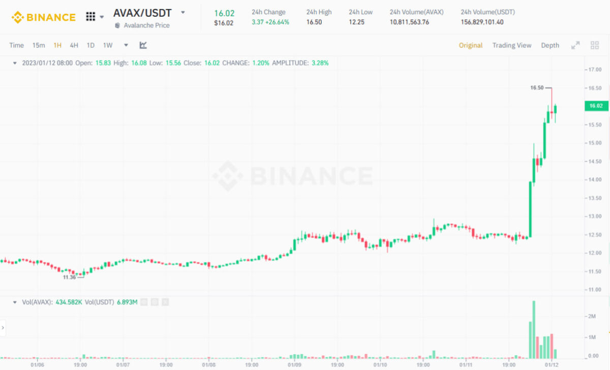 Following this news and the overall market growth ahead of the December 2022 CPI announcement, Avalanche's AVAX token has experienced a “crazy” surge over the past 24 hours. The token briefly hit $16.50 and is currently trading around $15.97, with total trading volume reaching $954 million—four times higher than the previous day.