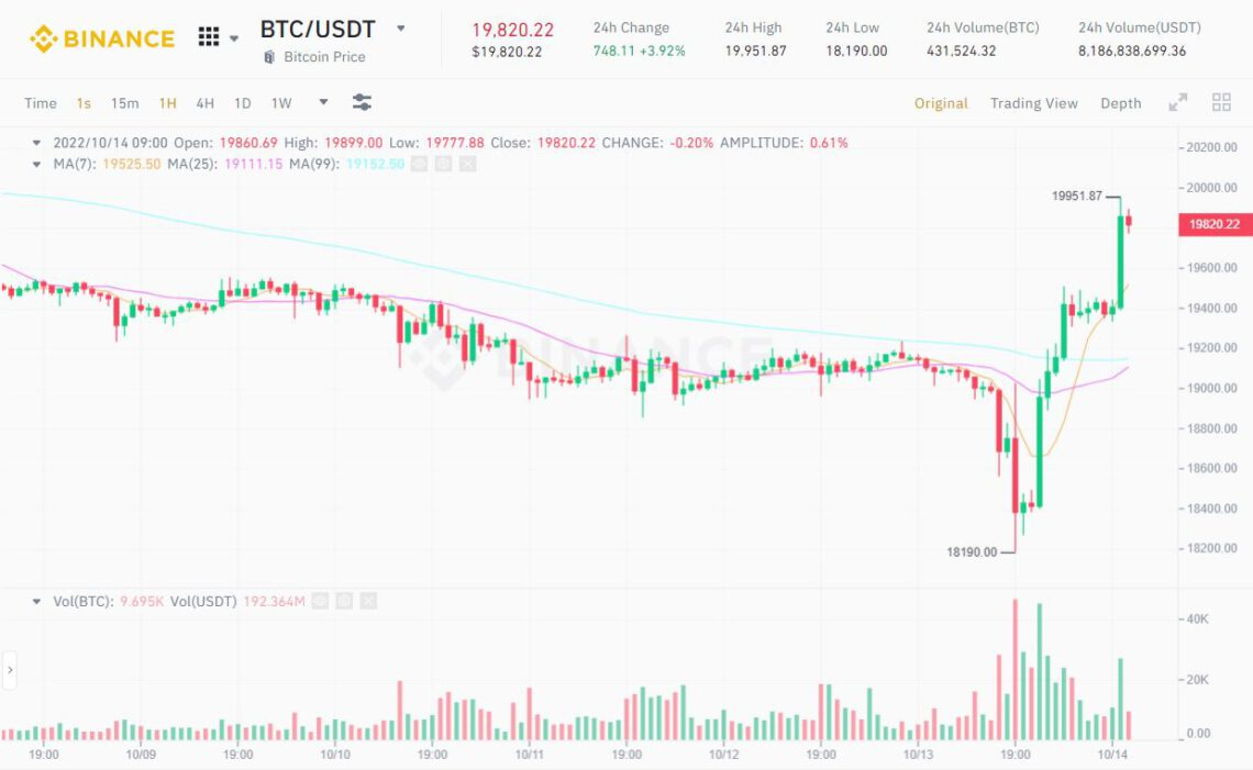 1-hour BTC/USDT Chart on Binance at 09:25 AM on October 14, 2022