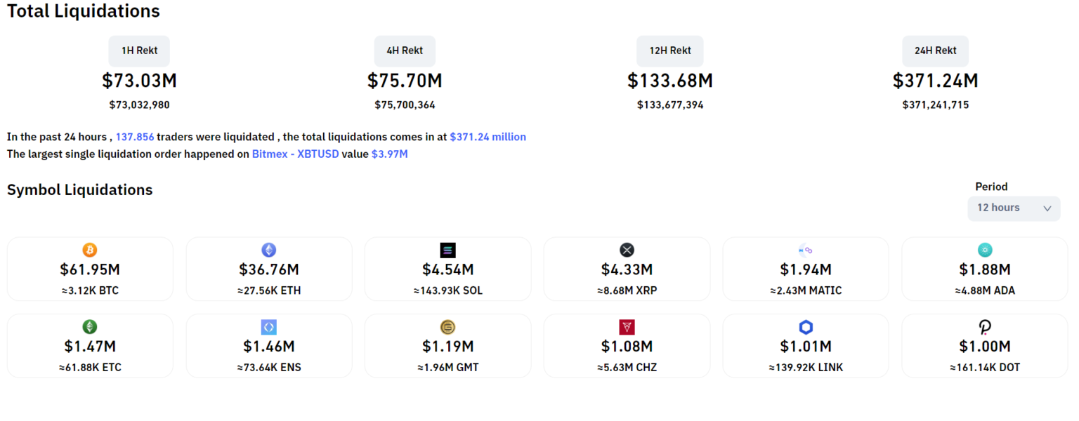 Crypto Liquidation Values in the Past 12 Hours, Data from Coinglass at 09:25 AM on October 14, 2022