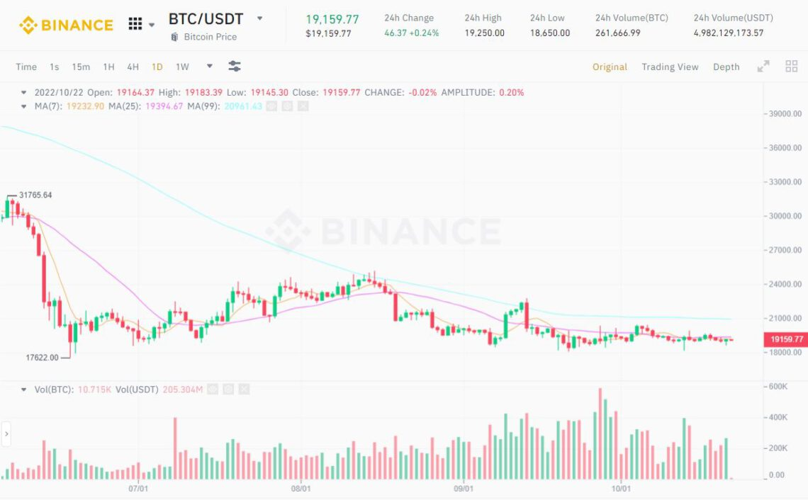 1D Chart of BTC/USDT on Binance as of 09:45 AM on 21/10/2022