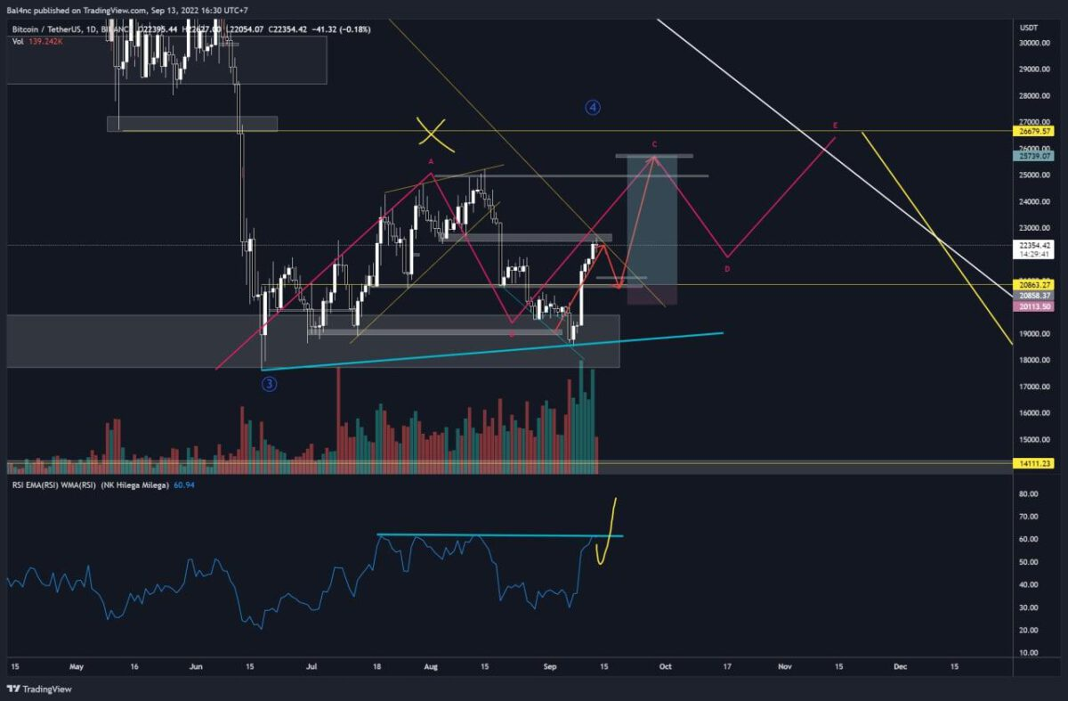 Last week was notably bullish for BTC, with a candle closing strongly with no upper wick and a long lower wick. The close at $21,800 surpassed the starting price from two weeks ago, forming a beautiful reversal candle cluster that suggests a continued upward trend.