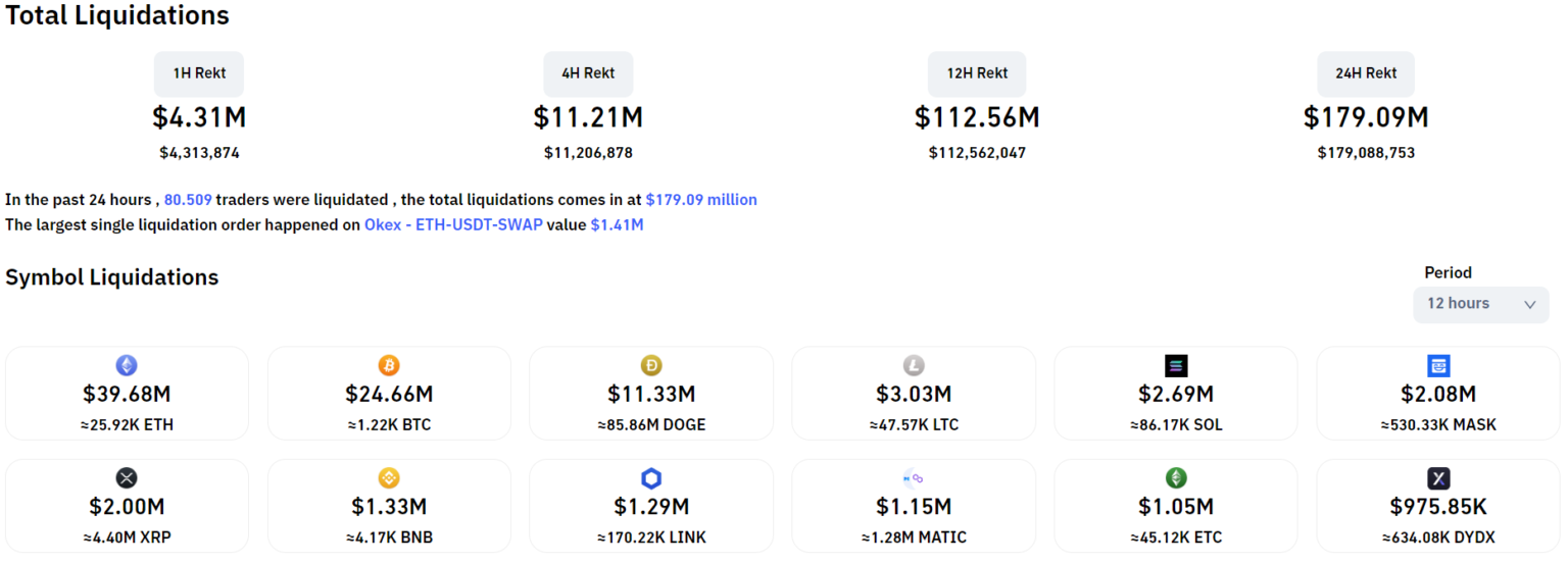 Crypto Liquidation Values in the Last 12 Hours, Data from Coinglass at 08:10 AM on 03/11/2022