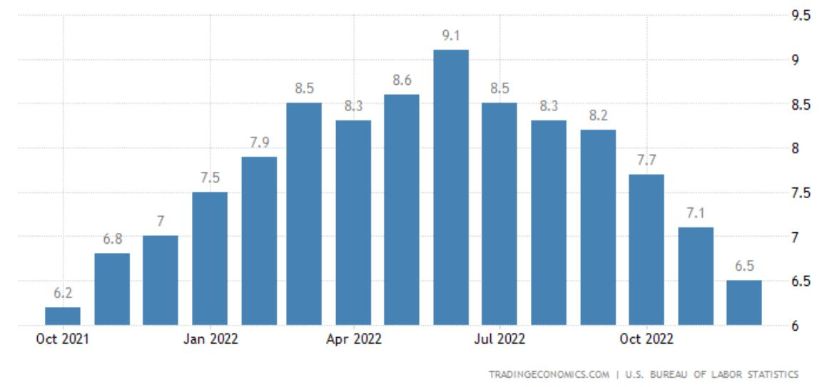 U.S. Inflation Trends by Month in 2022. Source: Trading Economics