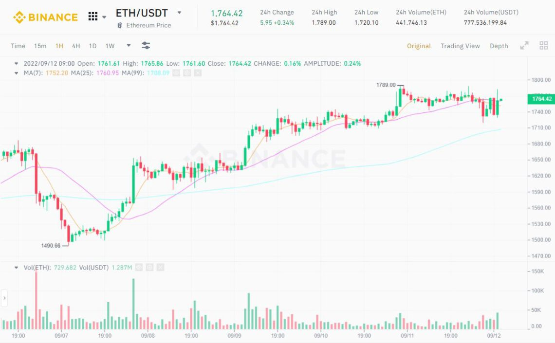 1-Hour ETH/USDT Chart on Binance as of 09:00 AM on September 12, 2022
