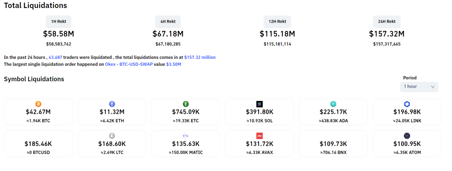 The latest BTC surge has resulted in nearly $60 million worth of derivatives being liquidated in the past hour, with short positions accounting for 70% of the liquidations.