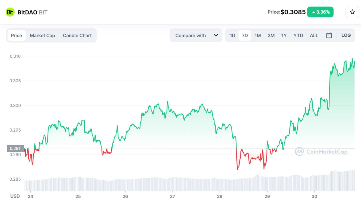 Following the announcement of the Mantle layer-2 solution, the BIT token of BitDAO has seen a slight increase.