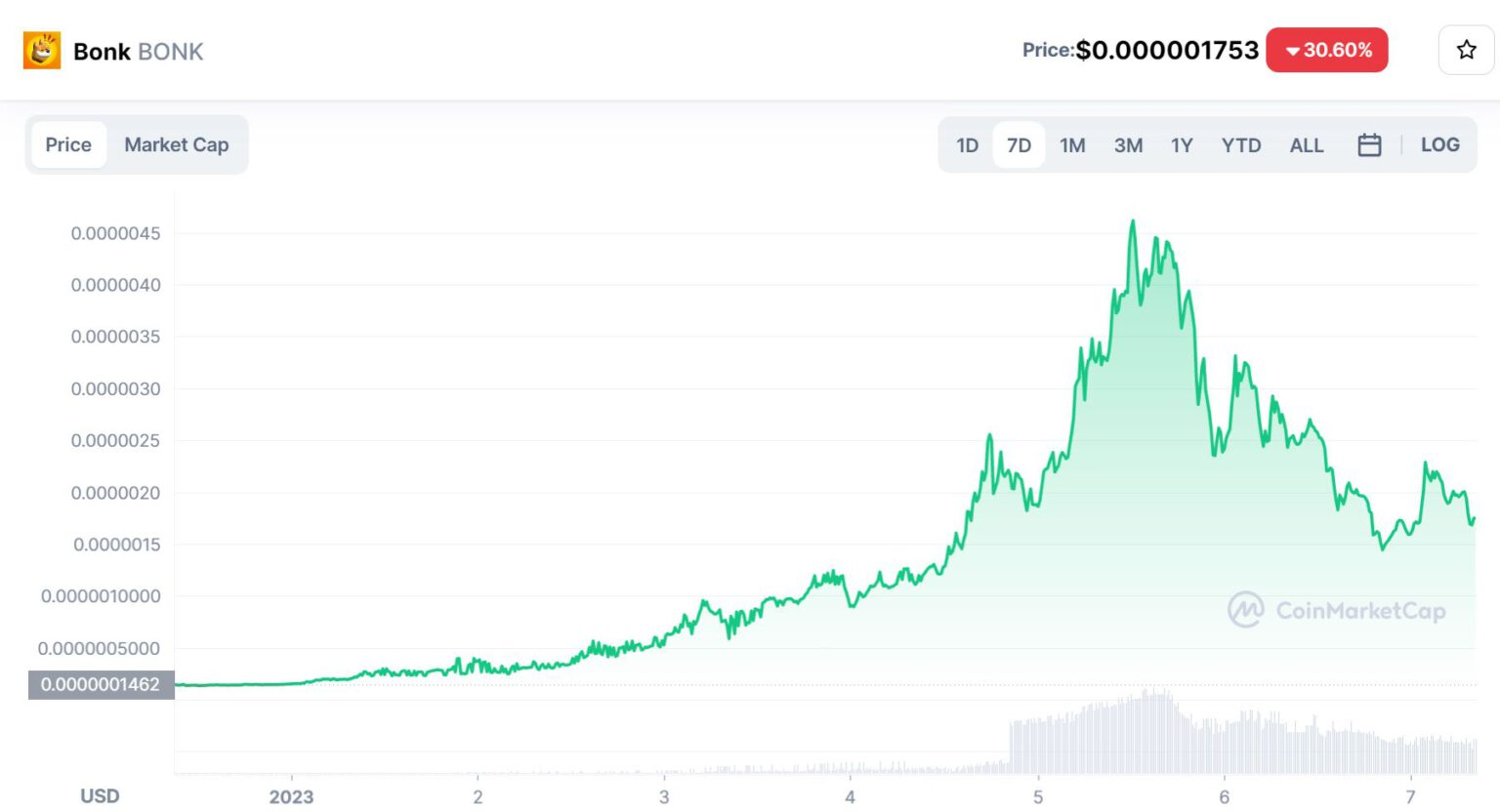 BONK Price Movements on January 7, 2023, Screenshot from CoinMarketCap