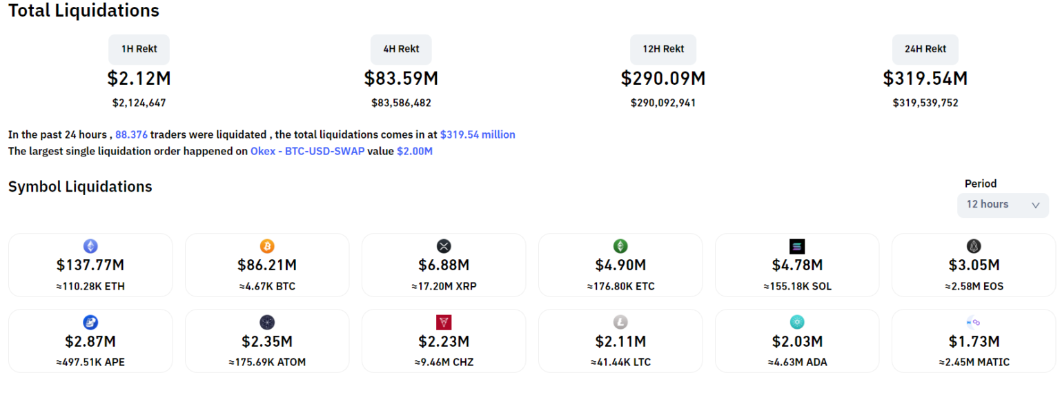 In the past 12 hours, over $290 million in derivatives have been liquidated, with the majority concentrated in ETH and BTC.