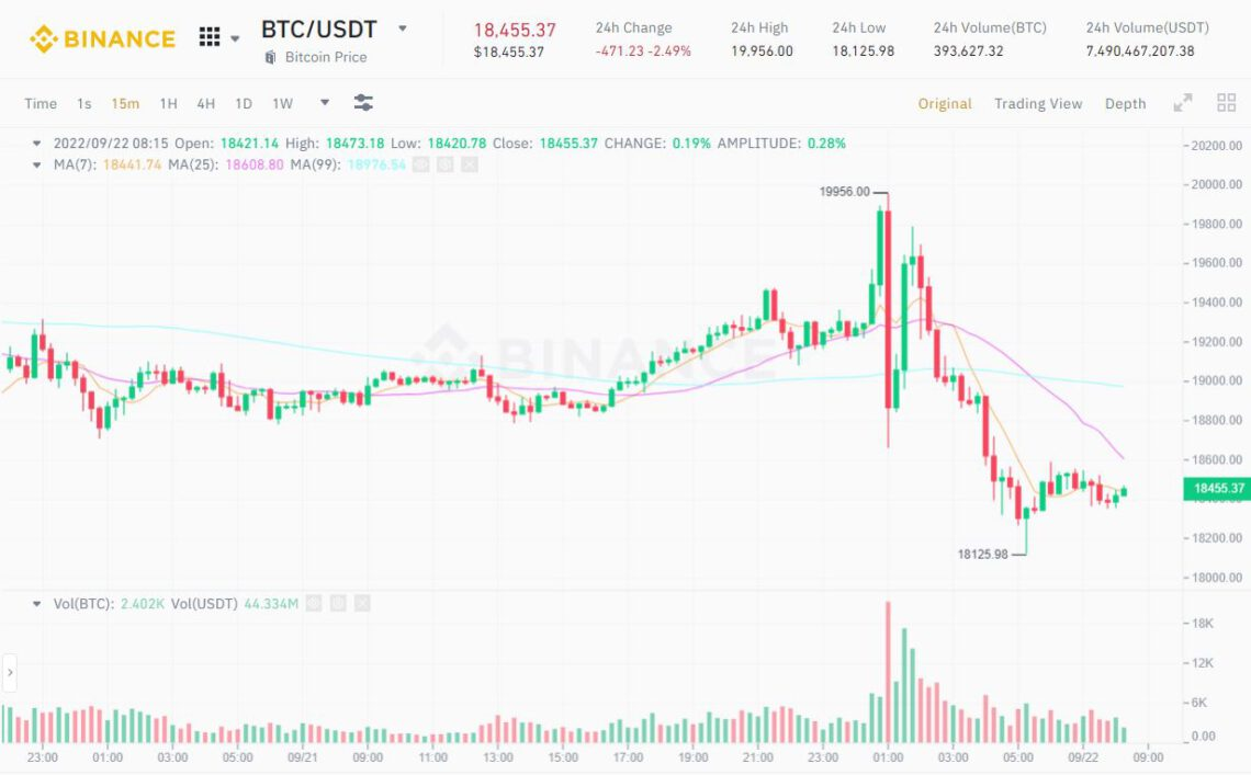 15-minute Chart of BTC/USDT on Binance at 08:25 AM on September 22, 2022