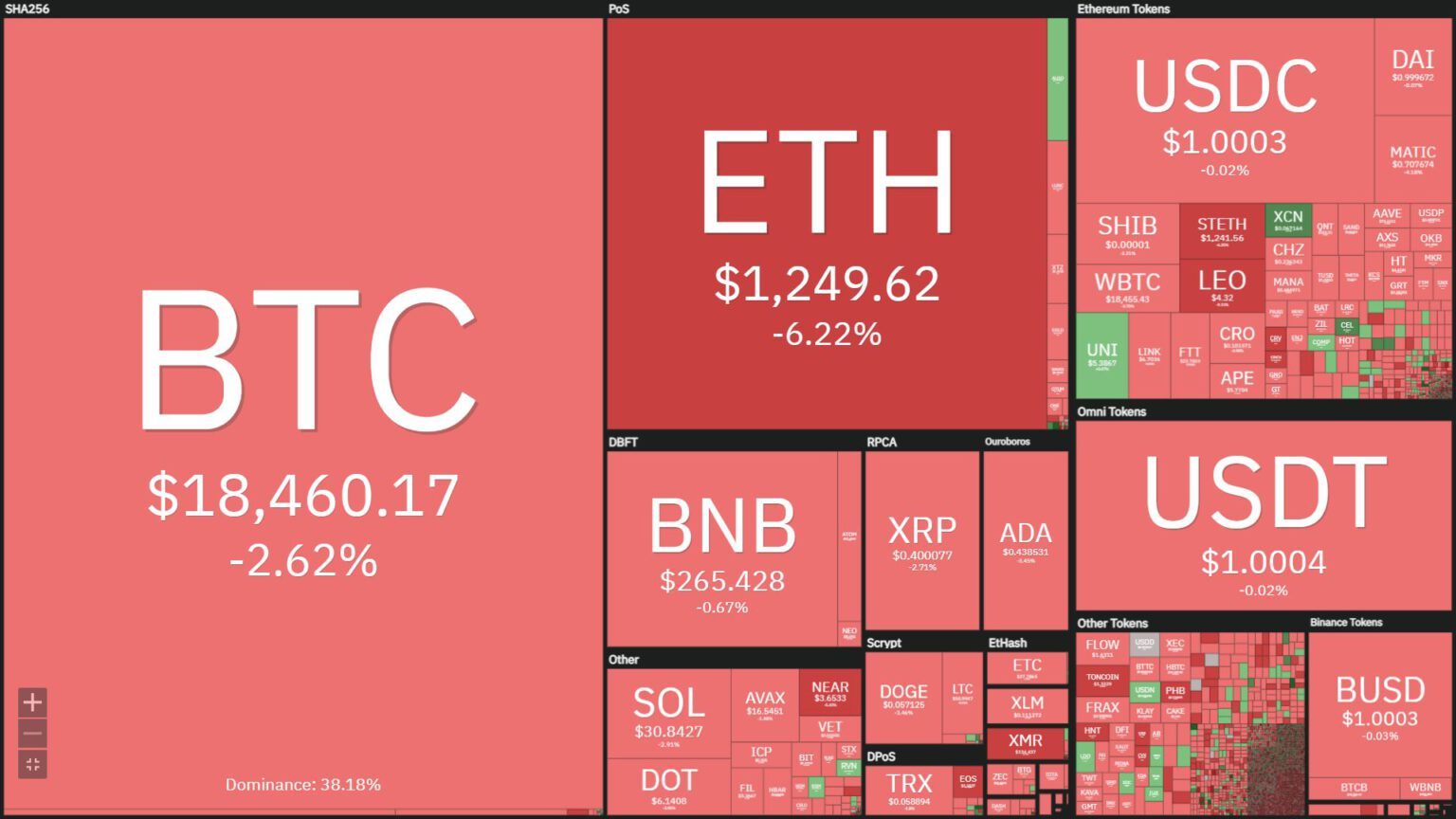 In recent hours, Bitcoin (BTC) has suffered a severe drop from a peak of $19,556 at the time of the Fed’s announcement to just $18,125 – the lowest level since the $17,622 low in mid-June.