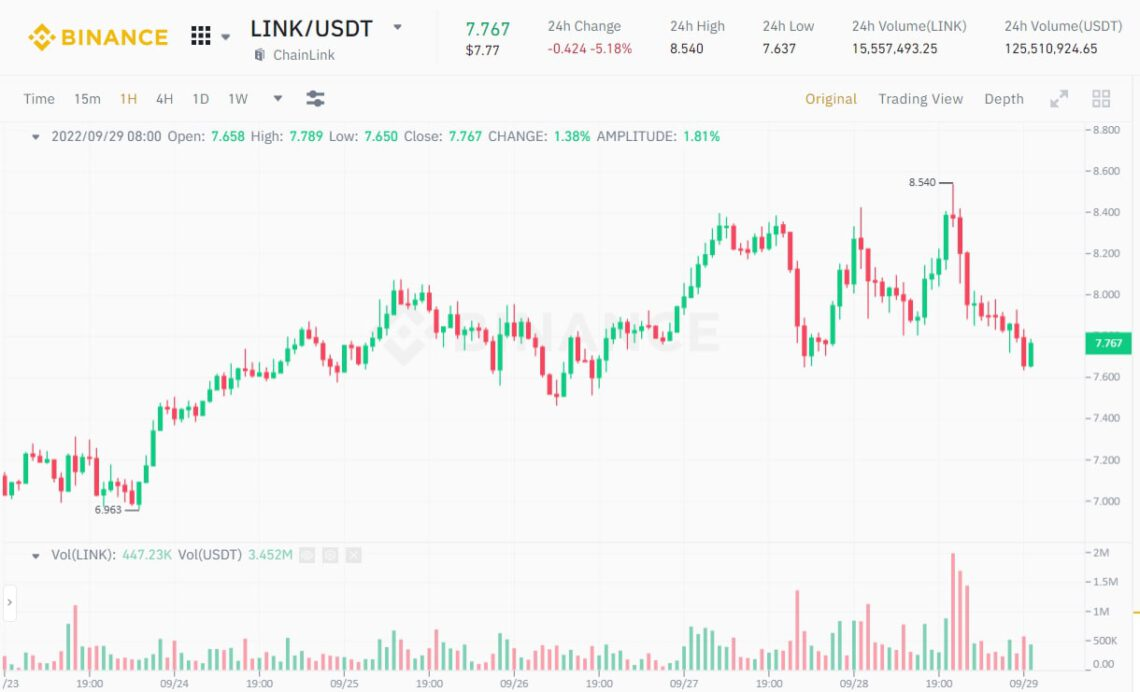 1H LINK/USDT Chart. Source: Binance