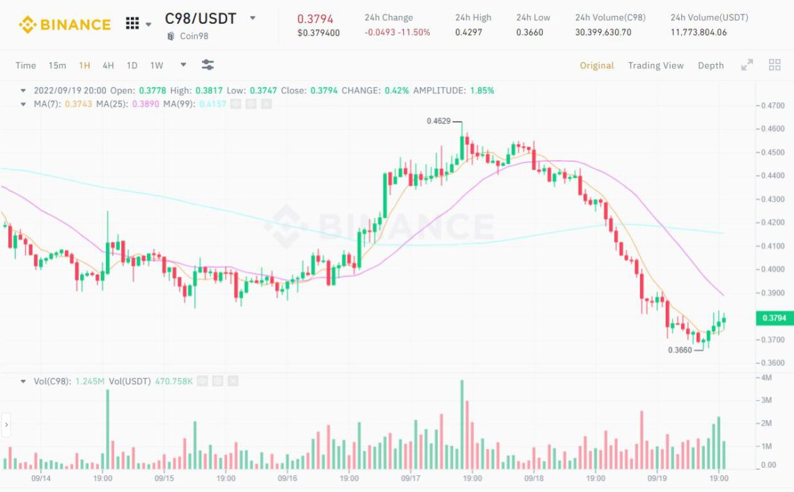 1-hour Chart of C98/USDT on Binance at 8:20 PM on September 19, 2022