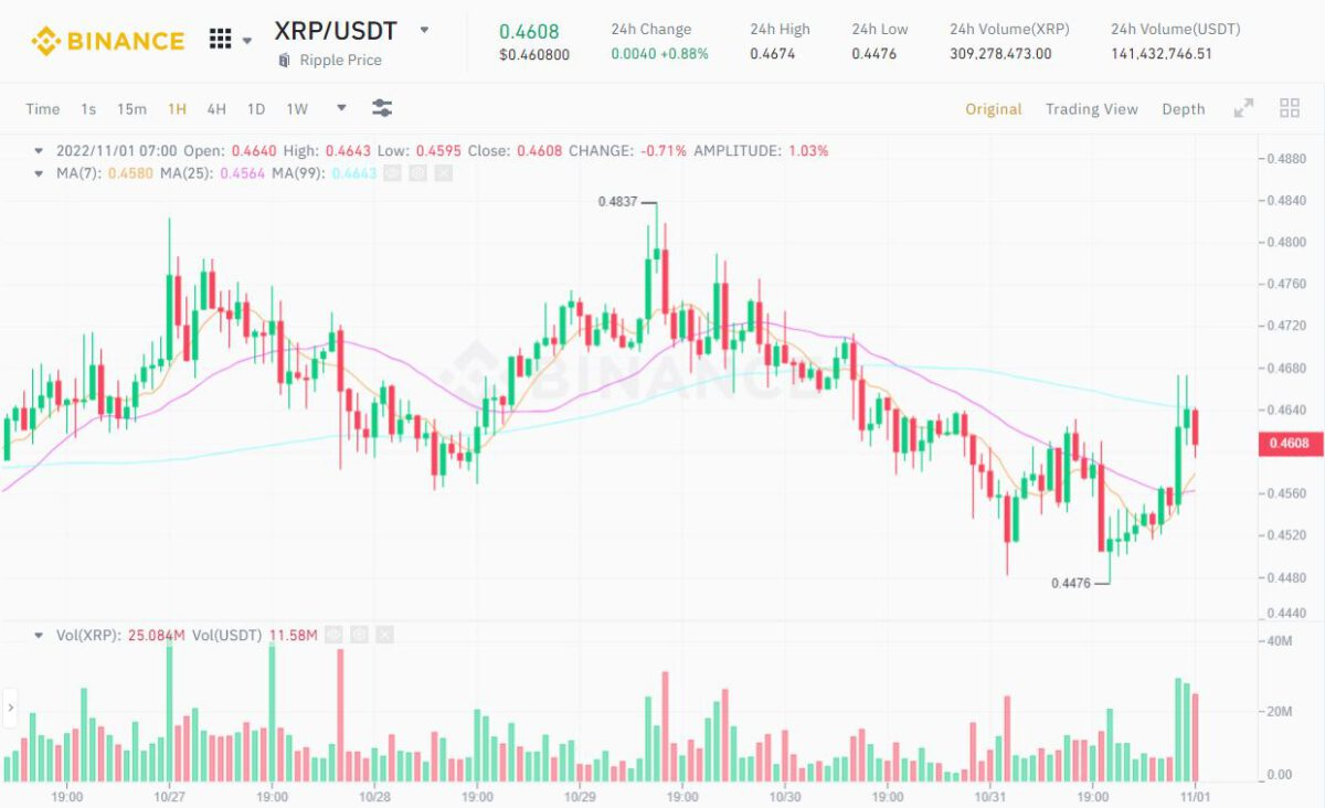 1-Hour Chart of the XRP/USDT Pair on Binance at 07:55 AM on 01/11/2022