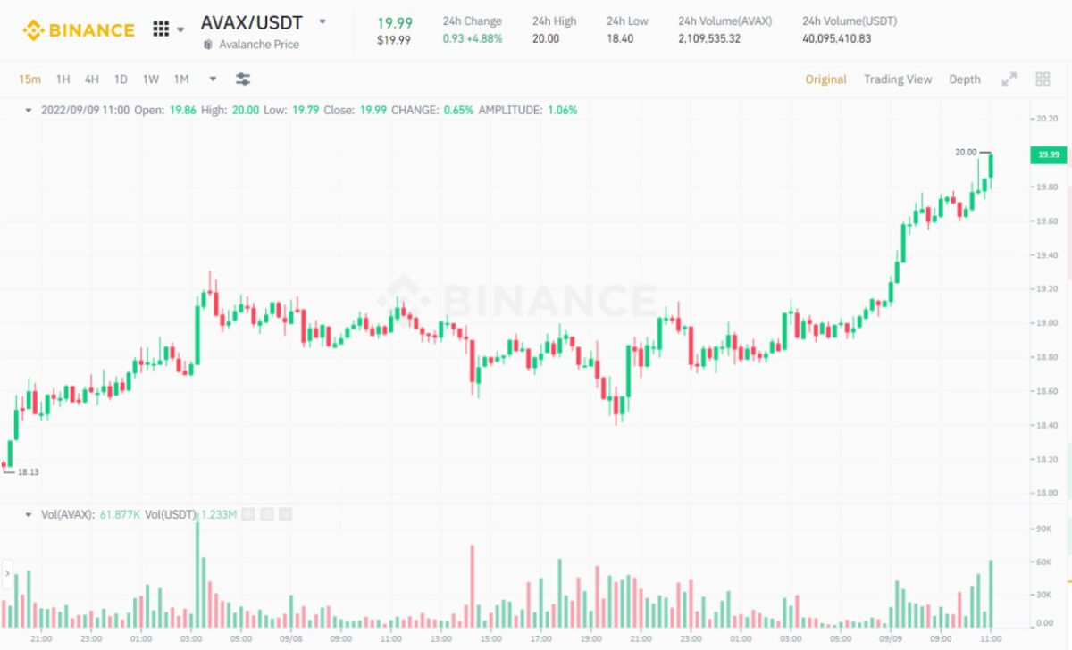 15-Minute AVAX/USDT Chart on Binance as of 11:15 AM on September 9, 2022