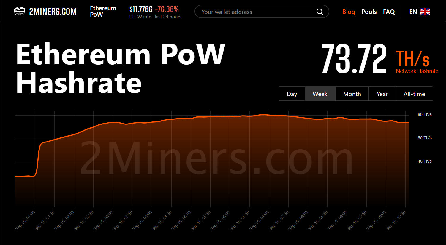 Hashrate of EthereumPoW (ETHW) as of 11:54 AM, September 16, 2022. Source: 2Miner