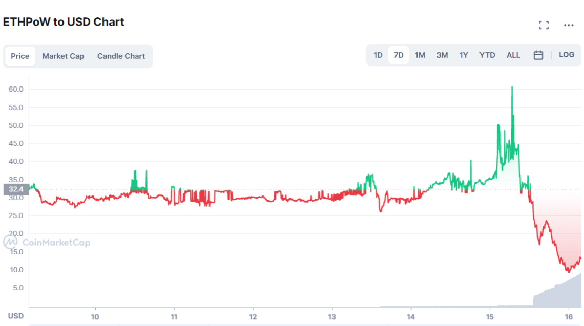 Price of EthereumPoW (ETHW) as of 11:54 AM, September 16, 2022. Source: CoinMarketCap