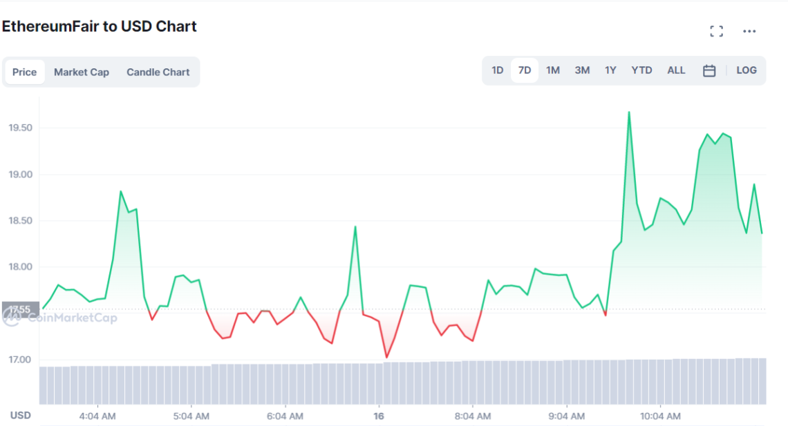Price of EthereumFair (ETF) as of 11:54 AM, September 16, 2022. Source: CoinMarketCap