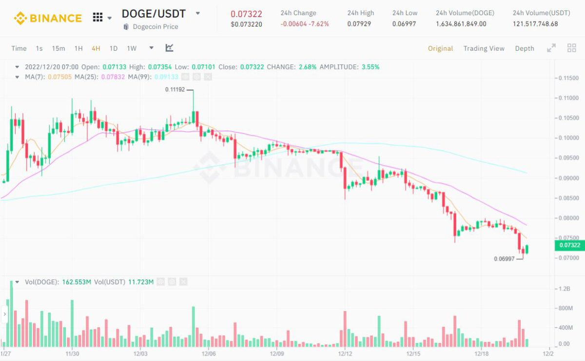 4-Hour Chart of DOGE/USDT on Binance as of 8:40 AM on December 20, 2022