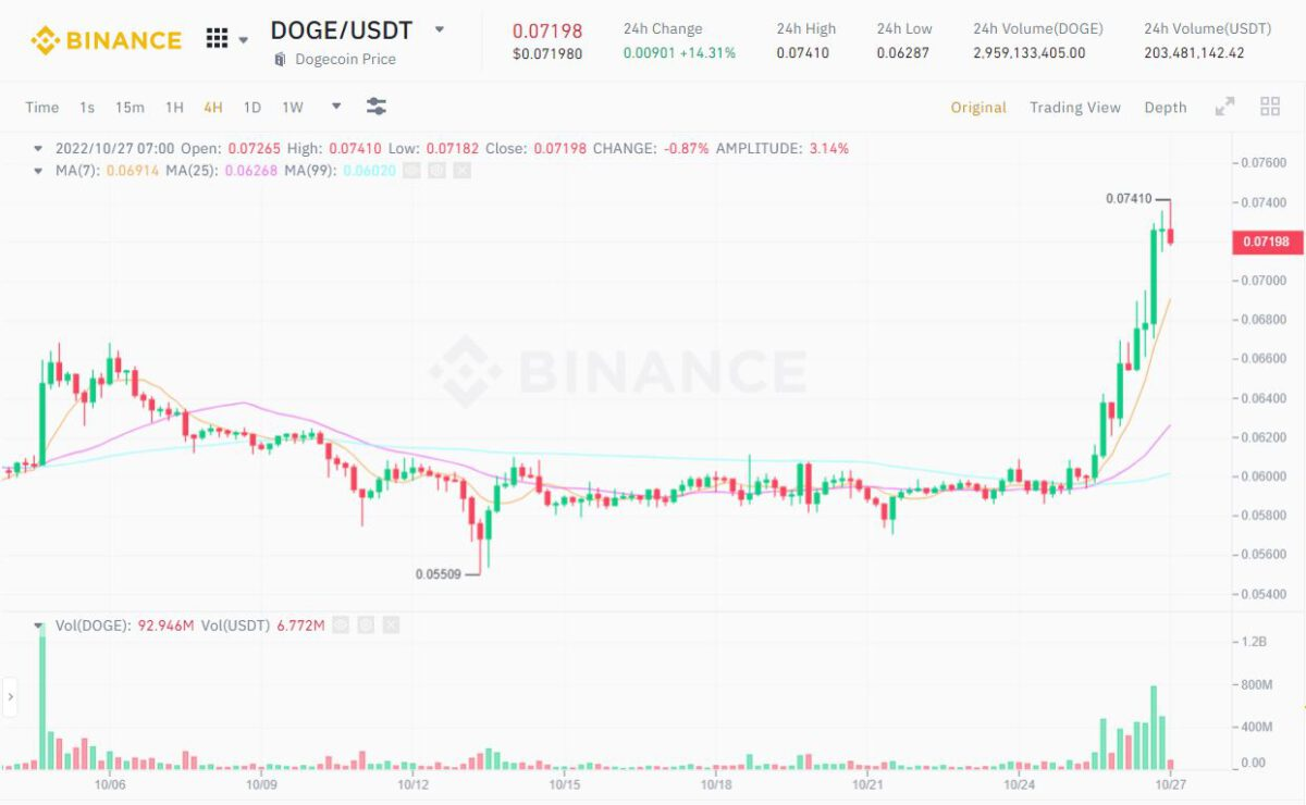 Dogecoin (DOGE) Surges as Elon Musk Nears Completion of Twitter Acquisition