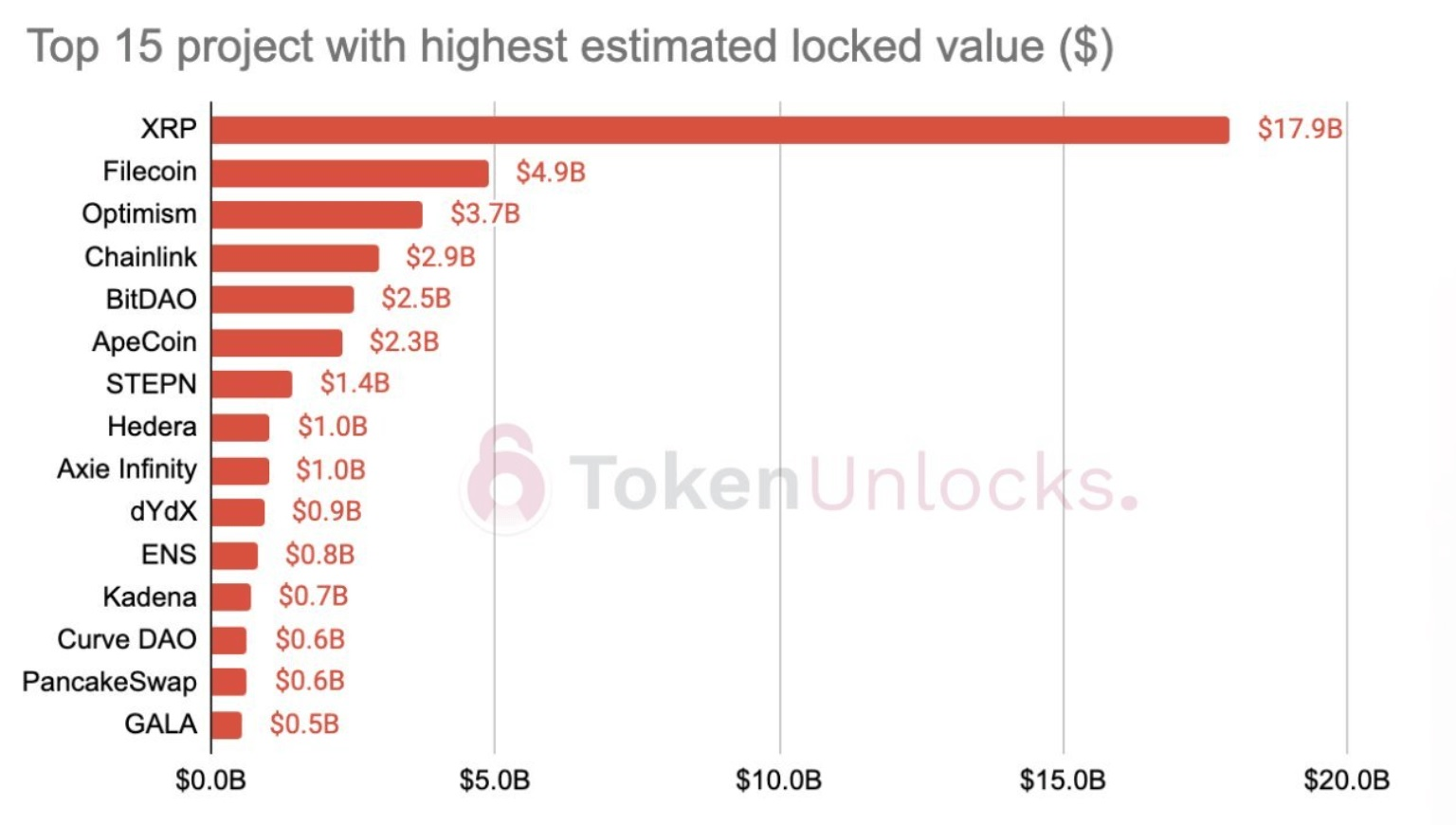 Token Unlocks has listed the top 15 projects with large amounts of tokens yet to be unlocked: