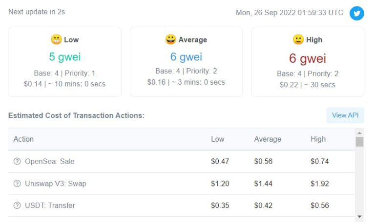ERC20 Token Transfer and Uniswap Swap Fees at 09:45 AM on 26/09/2022
