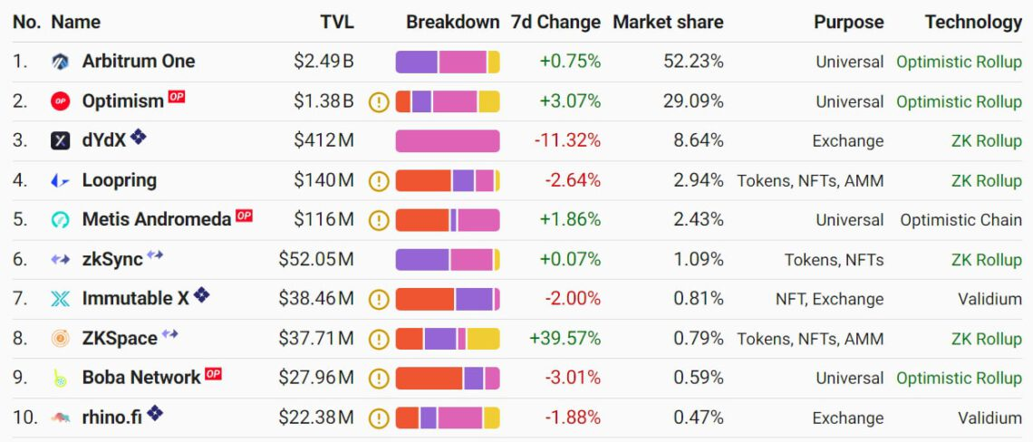 A significant amount of Ethereum’s activity has shifted to layer-2 ecosystems such as Arbitrum and Optimism. Arbitrum, for instance, holds the highest market share at 52.23% with $2.49 billion locked. This shift brings structural limitations, including transaction fees that, at times, have surpassed those of Ethereum’s layer-1.