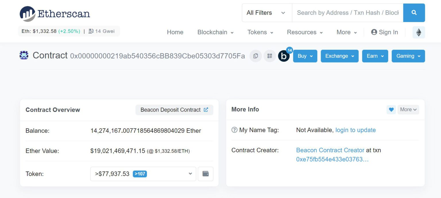 ETH 2.0 Staking Contract as of October 18, 2022. Source: Etherscan