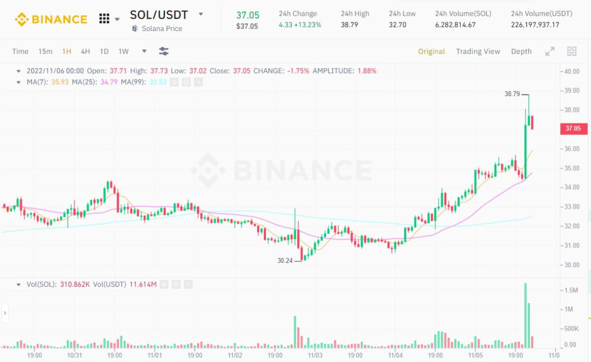 1H chart of SOL/USDT on Binance as of 06/11/2022