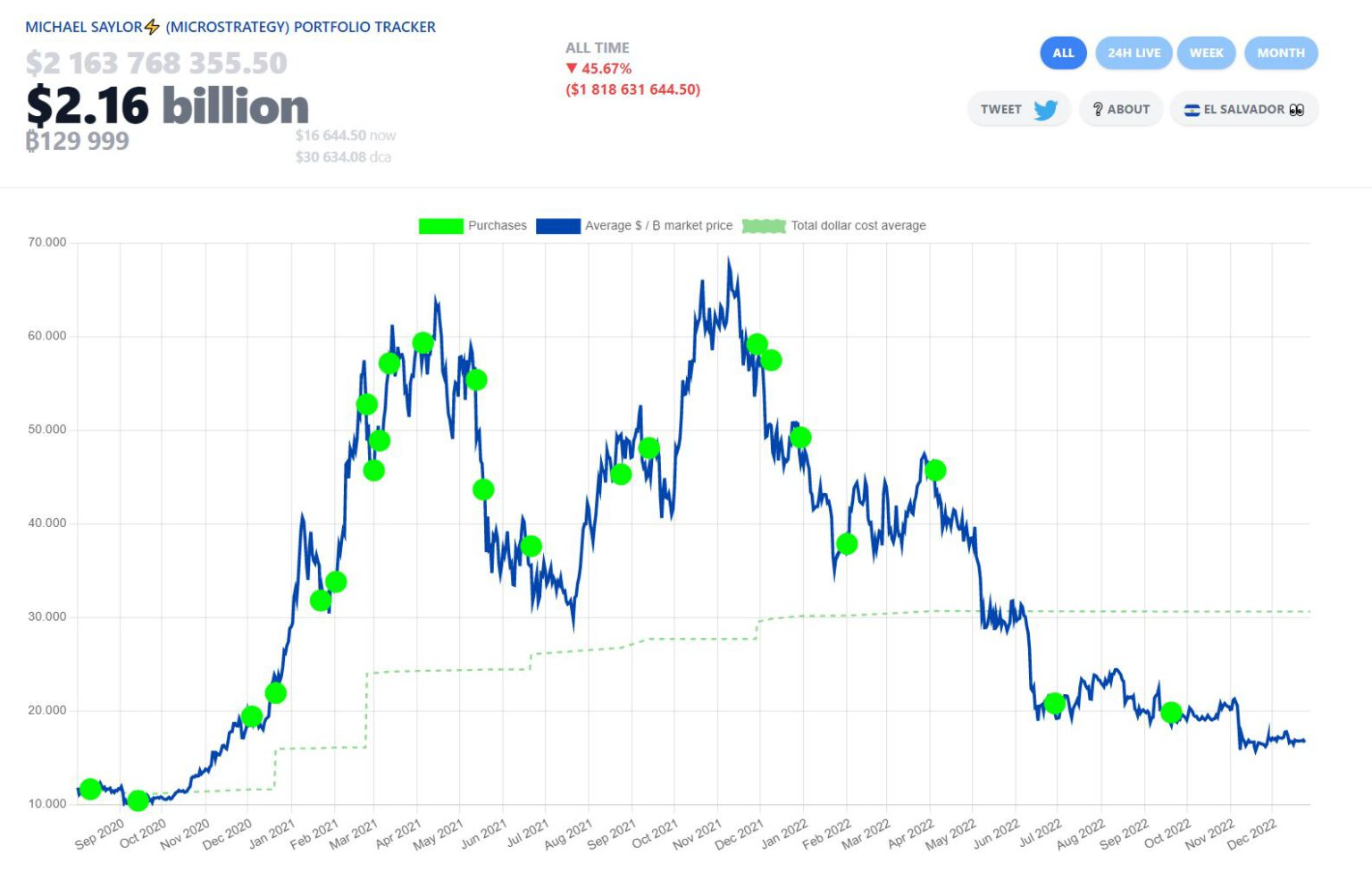 MicroStrategy has increased its #Bitcoin Holdings by ~2,500 #BTC. As of 12/27/22 @MicroStrategy holds ~132,500 bitcoin acquired for ~$4.03 billion at an average price of ~$30,397 per bitcoin. $MSTRhttps://t.co/lcMeULcGQk