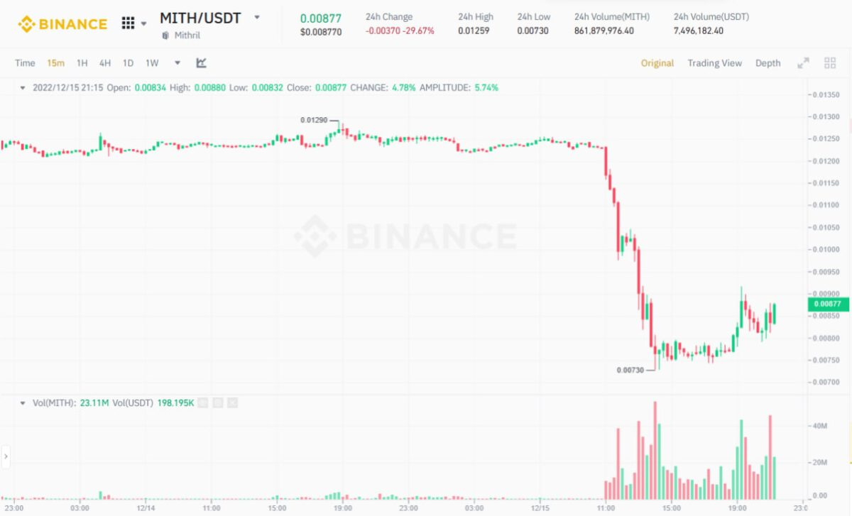 According to CoinGecko, MITH has fallen out of the top 1000 cryptocurrencies by market capitalization. The token has also been on a downward trend since Binance announced it would no longer support it, currently trading around $0.0088.