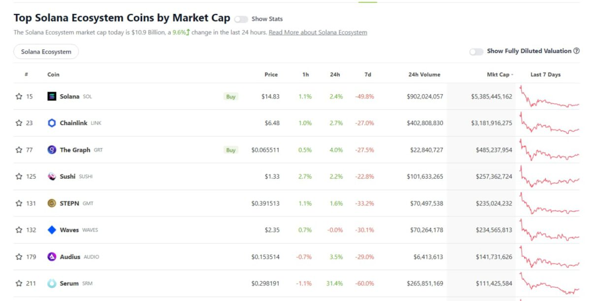 Price Movements of Top Solana Coins/Tokens. Source: CoinGecko