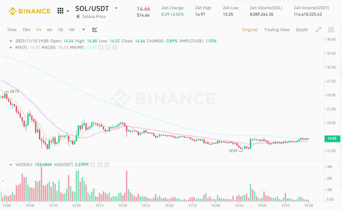 1H Chart of SOL/USDT on Binance as of 07:45 PM on 11/15/2022