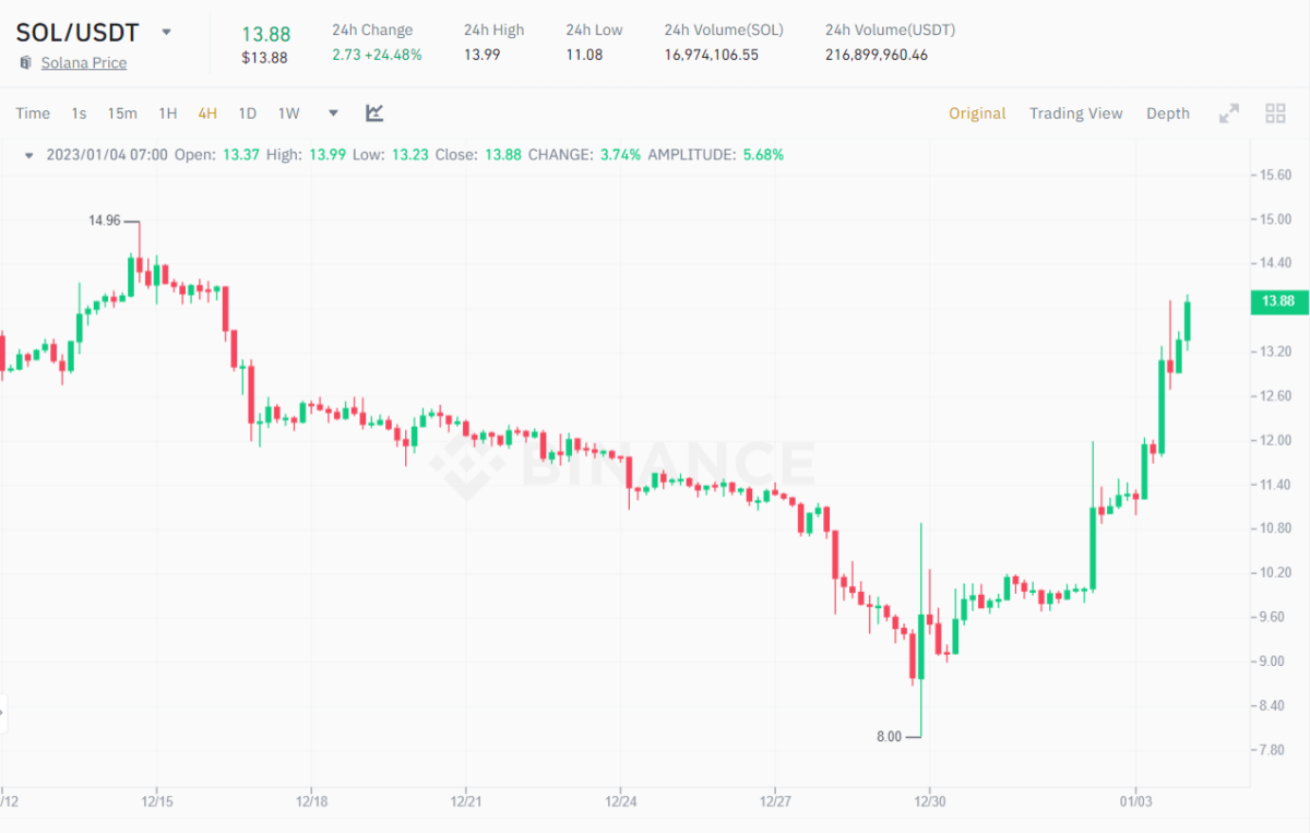 4H Chart of SOL/USDT as of 04/01/2023. Source: Binance