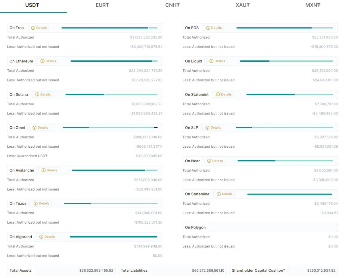 According to Tether’s website, TRON is currently the largest network in terms of circulating supply of USDT, with 37.1 billion USDT TRC20 in circulation, surpassing Ethereum’s 32.3 billion USDT ERC20. Tether also issues USDT on 12 other blockchains, but none match the volume of TRON and Ethereum.